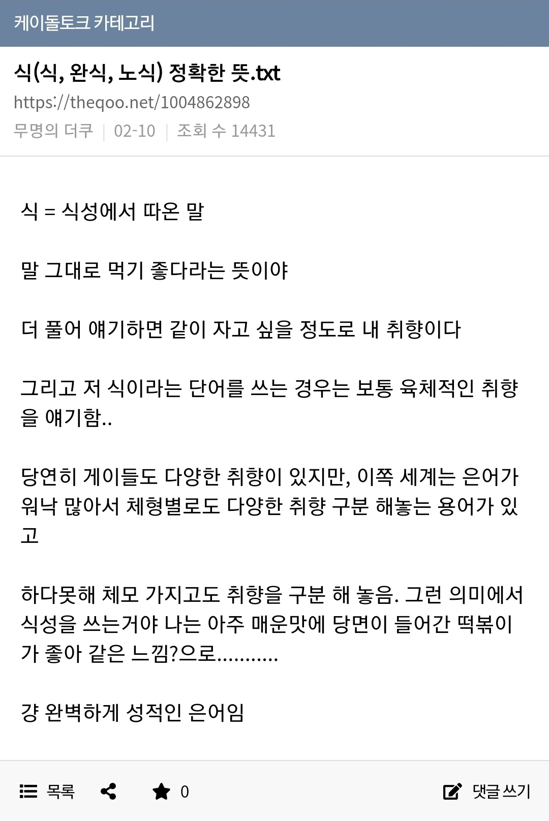아하! 식(음식, 먹다) 된다. 먹을 수 있다 라는 게이 커뮤니티 은어로 시작된거구나?
