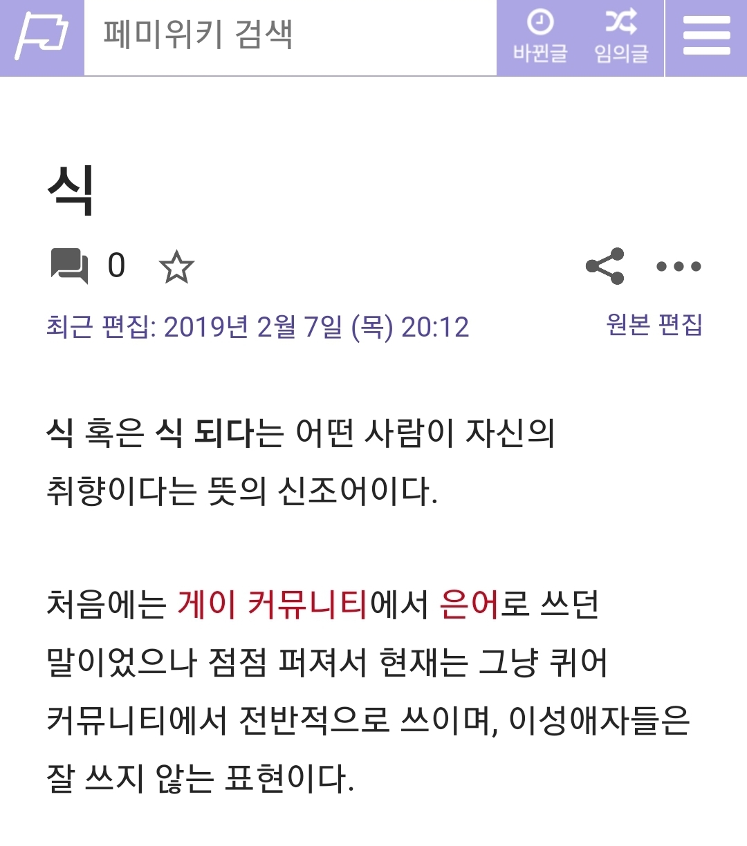 (캡쳐 출처 : https://femiwiki.com/w/%EC%8B%9D )