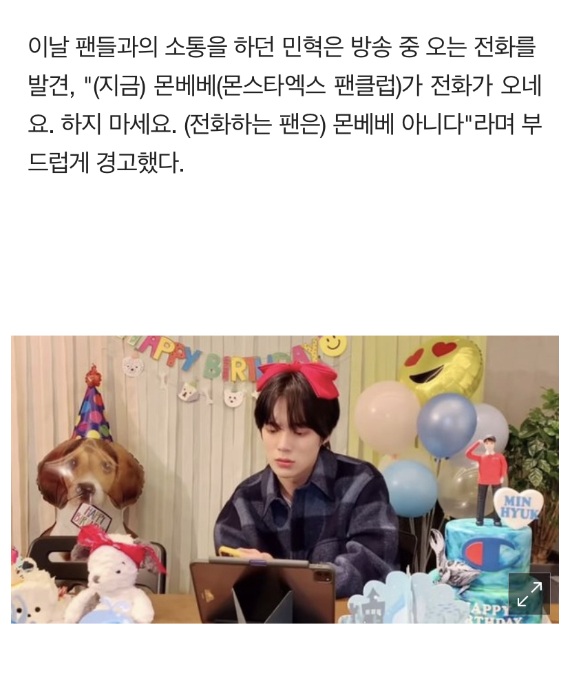 [연예]"하지 말라니까"…몬스타엑스 민혁, 생방송 중 사생팬 전화에 '발끈' 작성자소정아 지금 7월이야|작성시간21.11.05|조회수7,106 목록 댓글 17 글자크기 작게가 글자크기 크게가 https://m.news.nate.com/view/20211104n20028?issue_sq=10098&mid=e0608"하지 말라니까"…몬스타엑스 민혁, 생방송 중 사생팬 전화에 '발끈' : 네이트 연예뉴스: [톱스타뉴스 유수연]그룹 몬스타엑스(MONSTA X) 멤버 민혁이 생방송 중 걸려온 사생팬의 전화에 분노했다. 3일 민혁은 몬스타엑스 V라이브 채널을 통해 생일 기념 생방송을 진행했다. 이날 팬m.news.nate.com남의 폰 번호는 어떻게 알고... 소름 다음검색 현재 게시글 추가 기능 열기 북마크 공유하기 신고 센터로 신고 댓글 댓글 17 댓글쓰기 답글쓰기 댓글 리스트 작성자SHOWNUayo | 작성시간 21.11.05 민혁이 진짜 화나보이던데 나도 개빡침 ㅅㅂ 사생은 팬 아님 전화를 어찌나 하시던지 작성자서 이 강 | 작성시간 21.11.05 사생은 팬 아님 그냥 범죄자야 작성자니이이 | 작성시간 21.11.05 스토킹 처벌 법안 시행됐던데 꼭 처벌받길 바람.. 작성자이지혜 | 작성시간 21.11.05 반응하면 더좋아한다며....제발 싹 다 잡아넣었으면 작성자황위쉬안 | 작성시간 21.11.05 진짜 개싫어 댓글 전체보기