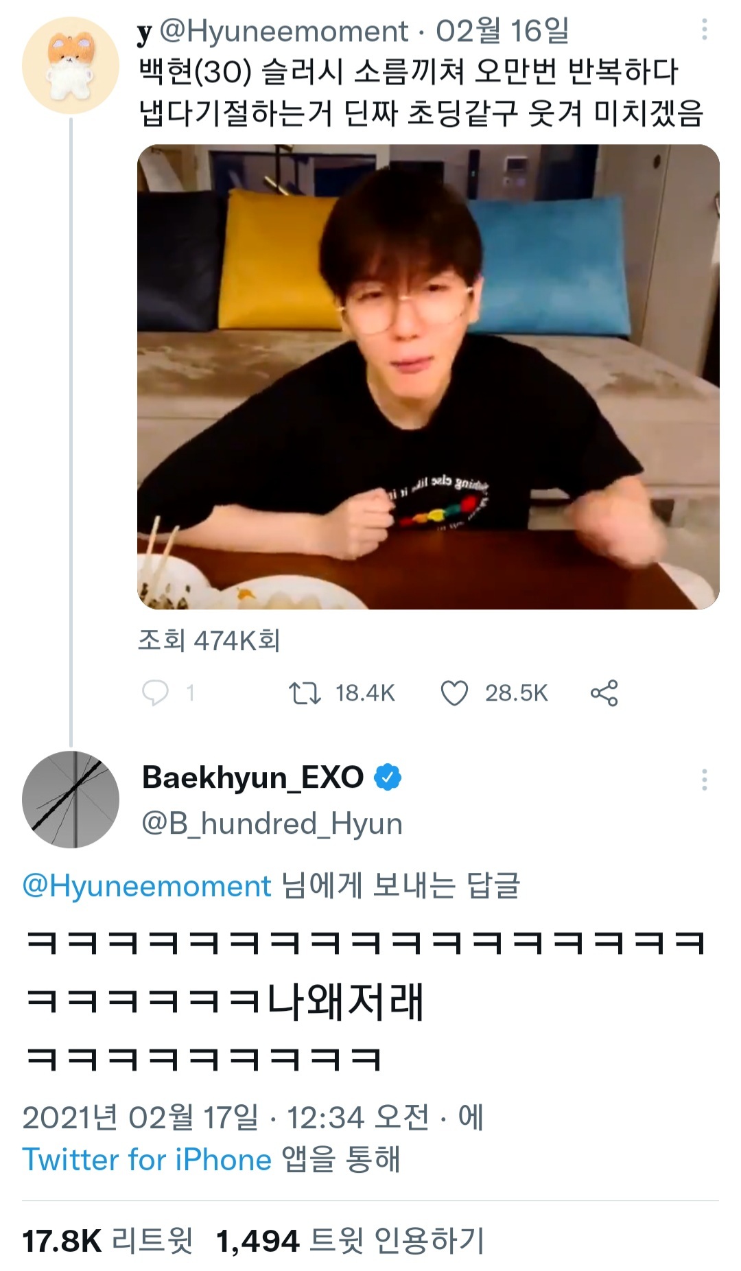 백현(30) 슬러시 소름끼쳐 오만번 반복하다 냅다기절하는거 딘짜 초딩같구 웃겨 미치겠음 pic.twitter.com/FZIlDAKEVF
