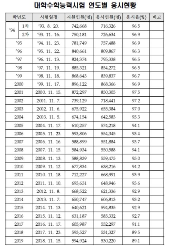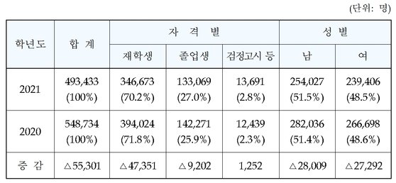 + 올해 2022학년도 수능 응시자는 50만 9천여명으로 다시 작년보다 늘었음!