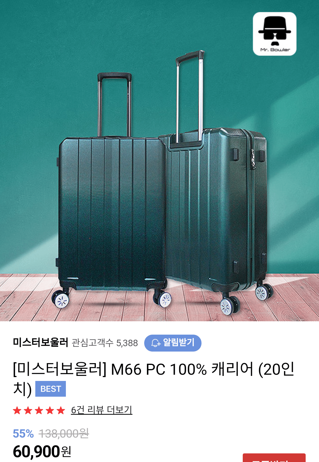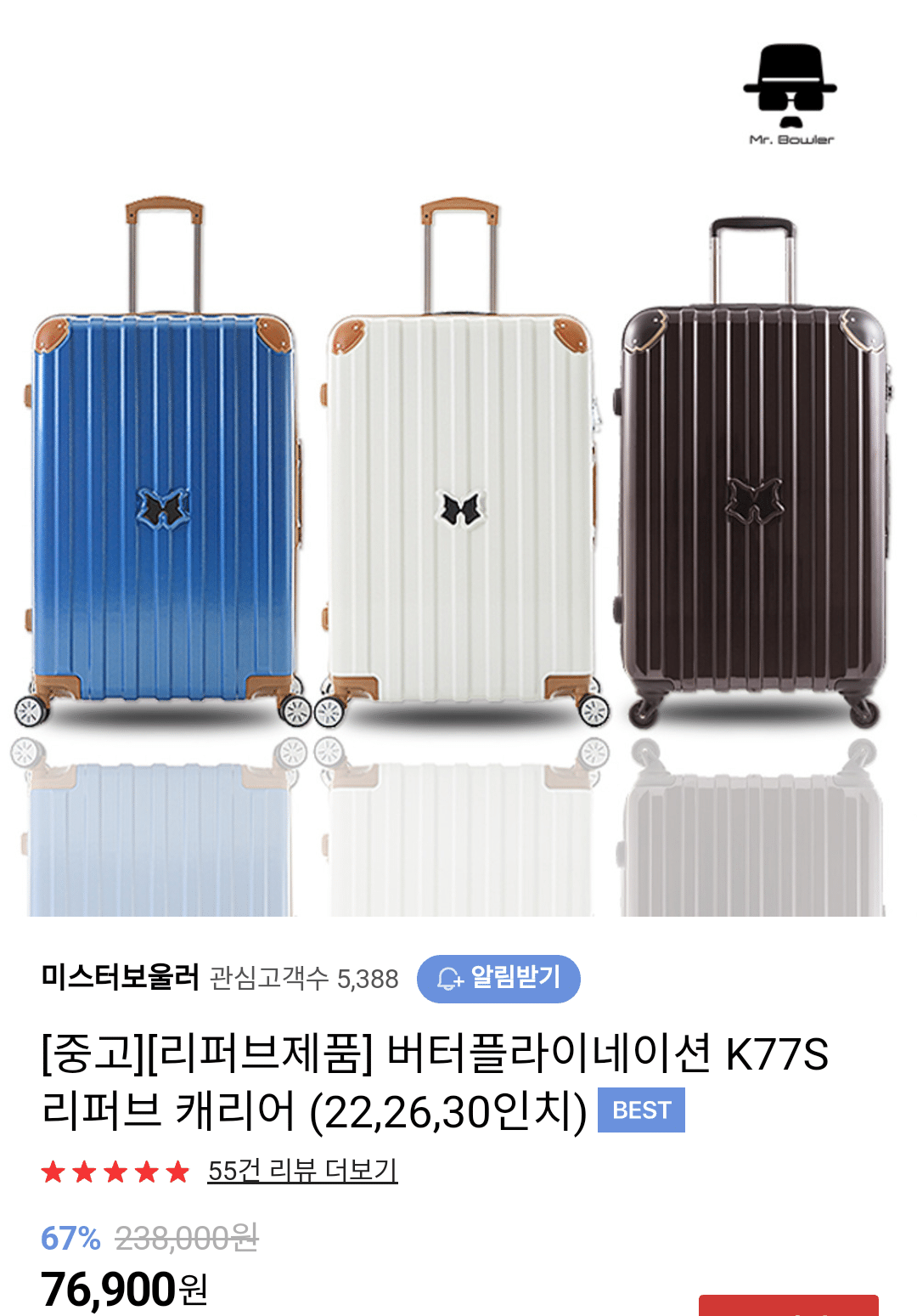 참고로 미스터보울러는 지금 20인치 캐리어만 새제품이 있어! 20인치 초과는 K77S 밖에 없는 것 같더라