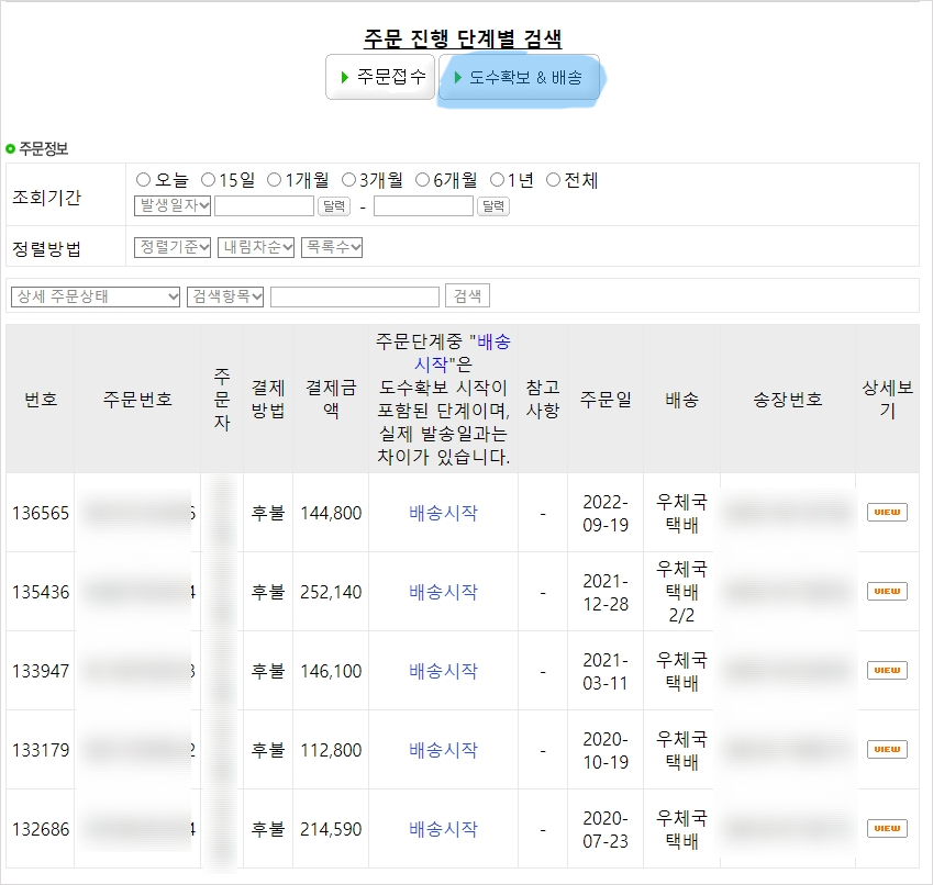 (구매내역 볼때 도수확보&배송버튼 눌러야 확인가능함