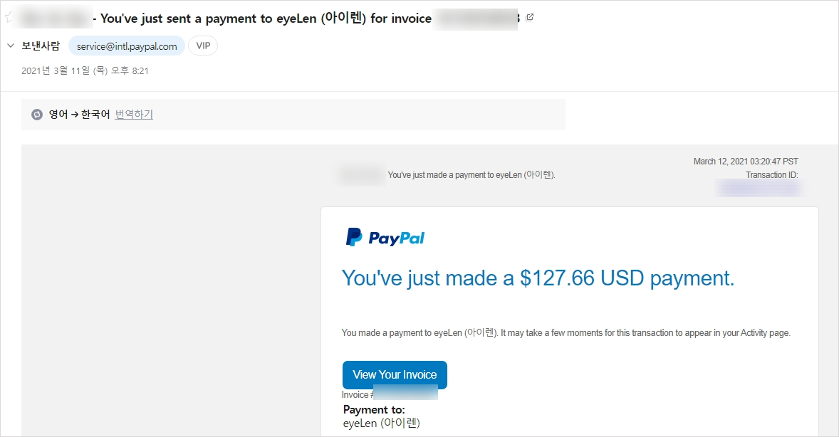 구매하면 24시간내에 결제해달라는 메일오는데 파란버튼눌러서 사전에 페이팔에 등록한 카드로 결제하는 방식임