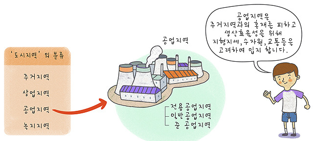 공업의 편익(便益)을 증진(增進)하기 위히여 필요한 지역으로「국토의계획및이용에관한법률」에 의한 용도지역 중 하나인 도시지역의 세분