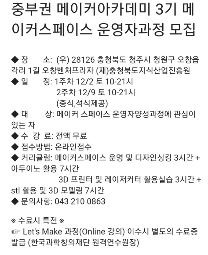 중부권 메이커아카데미 강사양성과정 3기 모집