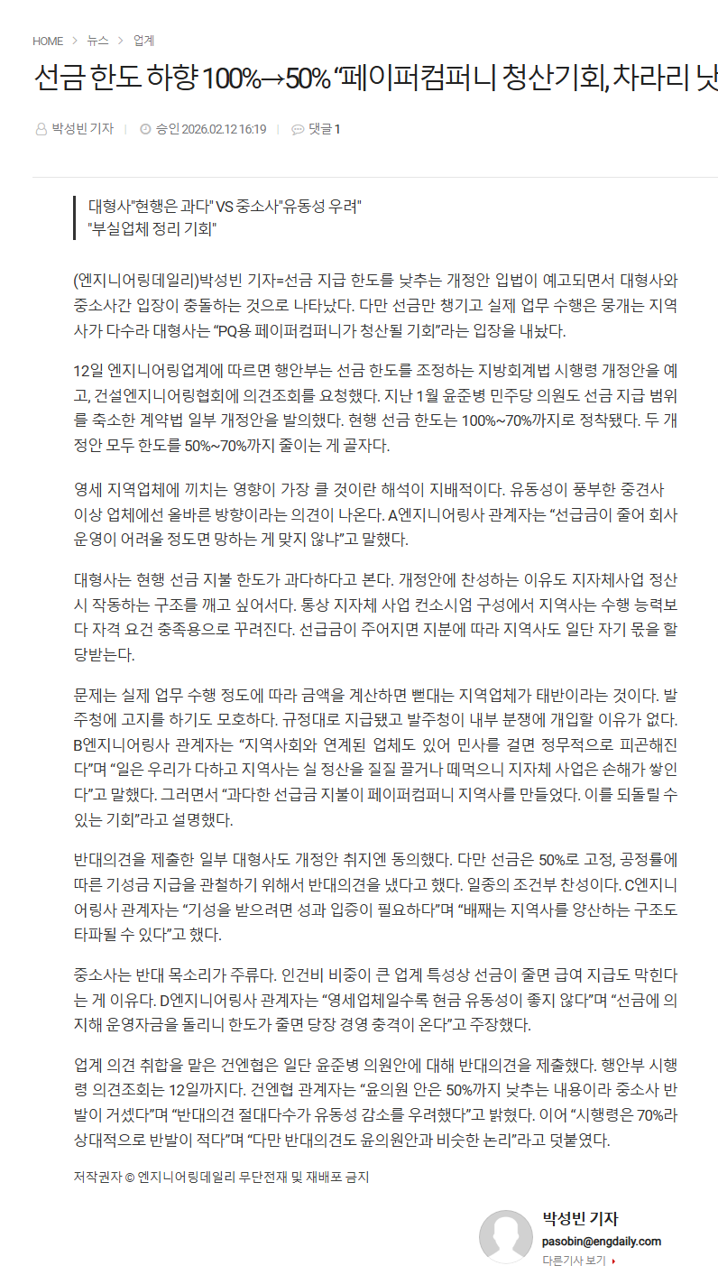 선금 한도 하향 100%→50% “페이퍼컴퍼니 청산기회, 차라리 낫다”
