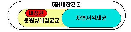 [총대장균군, 대장균, 자연서식세균 개념도]