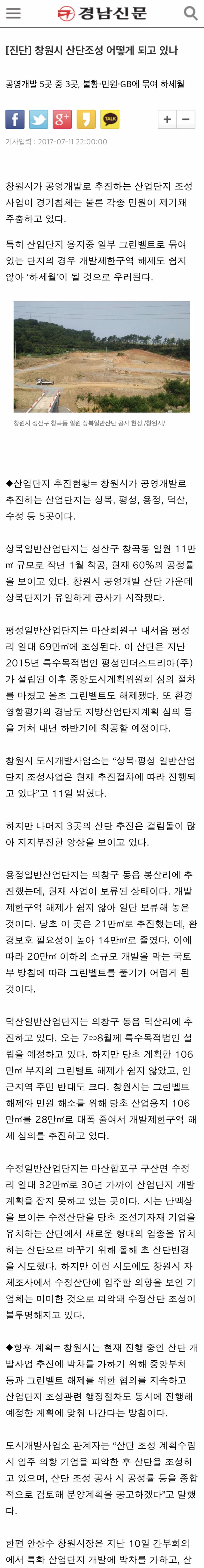 창원시 산단조성 어떻게 되고 있나 작성자외장하드|작성시간17.07.14|조회수6 목록 댓글 0 글자크기 작게가 글자크기 크게가 공영개발 5곳 중 3곳, 불황·민원·GB에 묶여 하세월 [진단] 창원시 산단조성 어떻게 되고 있나창원시가 공영개발로 추진하는 산업단지 조성사업이 경기침체는 물론 각종 민원이 제기돼 주춤하고 있다. 특히 산업단지 용지중 일부 그린벨트로 묶여 있는 단지의 경우 개발제한구역 해제도 쉽지 않아 ‘하세...m.knnews.co.kr 다음검색 현재 게시글 추가 기능 열기 북마크 공유하기 신고 센터로 신고 댓글 댓글 0 댓글쓰기 답글쓰기 댓글 리스트