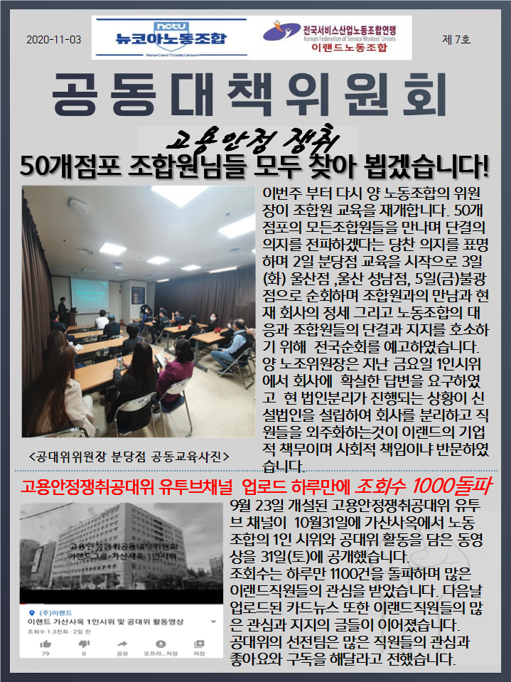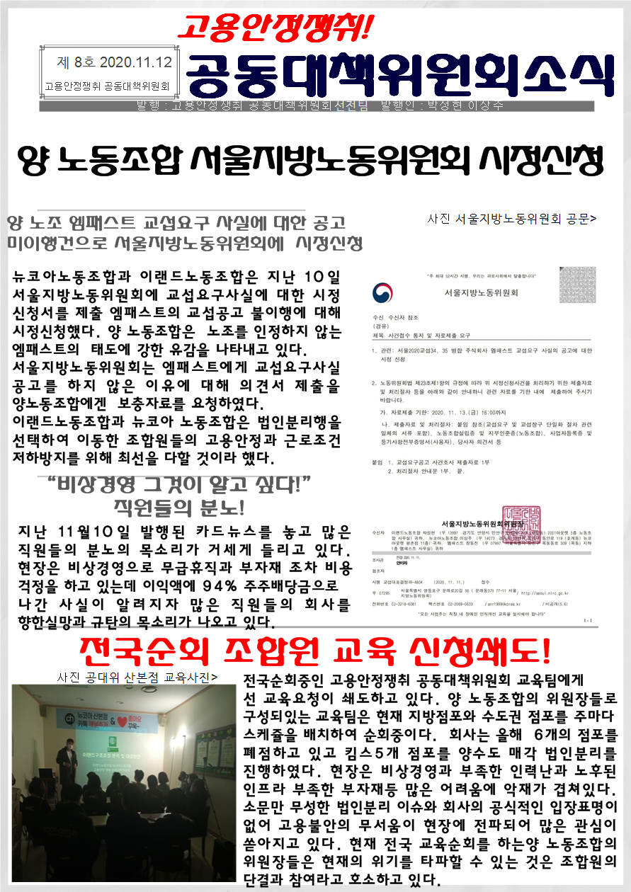 고용안정쟁취공대위 소식지 7호 8호 작성자아나키스트|작성시간20.11.15|조회수167 목록 댓글 0 글자크기 작게가 글자크기 크게가 다음검색 현재 게시글 추가 기능 열기 북마크 공유하기 신고 센터로 신고 댓글 댓글 0 댓글쓰기 답글쓰기 댓글 리스트