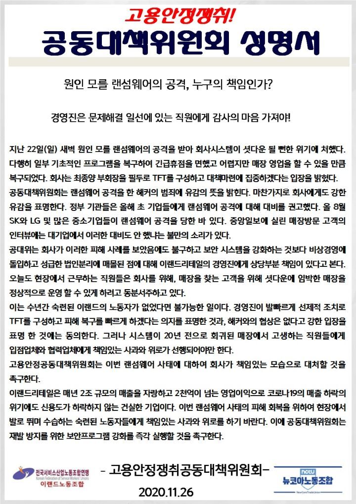 11.26공대위성명서(랜섬웨어관련) 작성자아나키스트|작성시간20.11.28|조회수155 목록 댓글 0 글자크기 작게가 글자크기 크게가 다음검색 현재 게시글 추가 기능 열기 북마크 공유하기 신고 센터로 신고 댓글 댓글 0 댓글쓰기 답글쓰기 댓글 리스트