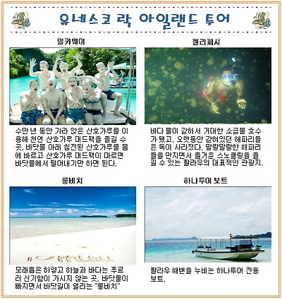 ▣ 여행준비물 보러가기 ☜ 클릭 ▣ 팔라우 동영상 ☜ 클릭 | |||||||||