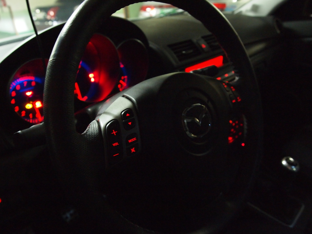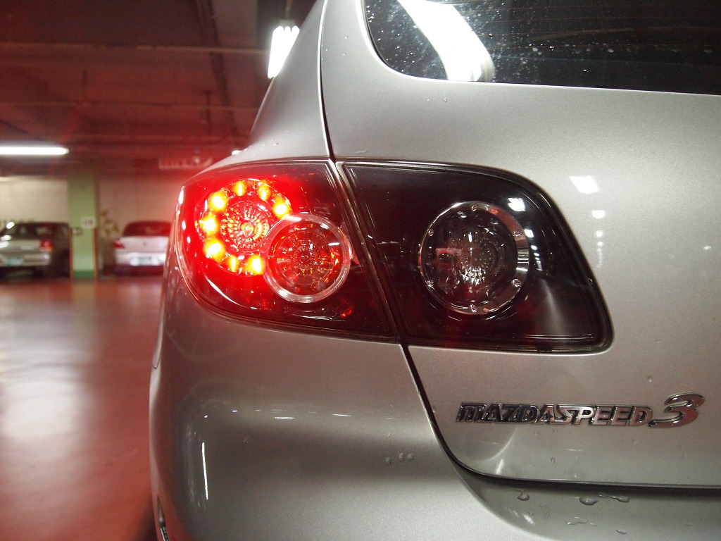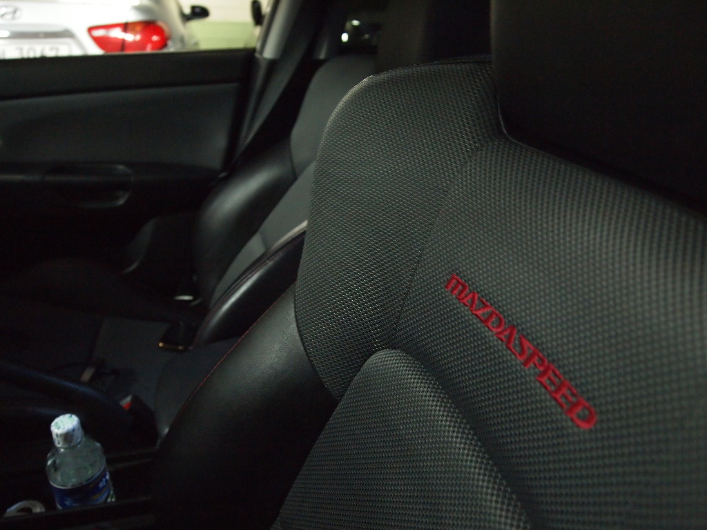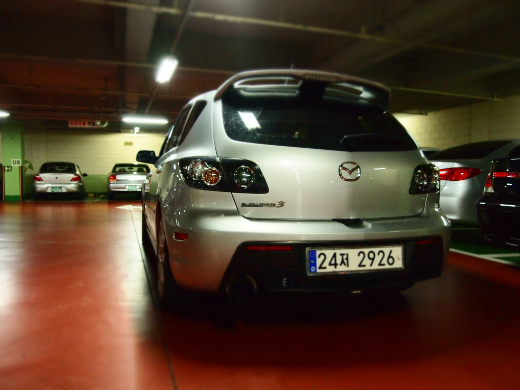 - 07 Mazdaspeed 3 - Grand Touring Packege(leather seats, BOSE and etc) - 2.3 DISI turbocharged engine - 263 hp, 280lb-ft torque.. stock - LSD, 6-speed manual - Mazdaspeed CAI system(shorted) - RPMC motor works turbo inlet - GReddy Ti-C Catback Exhaust - Turbosmart BPV - Streetunit real motor mount - Streetunit shift bushing - MSD's Dashhawk Scan Tool - BridgeStone Potenza RE050A tires(set of 4) - Hankook noble S1 tires(set of 4) - 30% front, 20% real tinted - 6000k HID low beams - Amsoil 5W-30, every 3000 miles, currnely running Mobil1 EP - Redline MT-90 synthetic transmission fluid every 10,000 miles