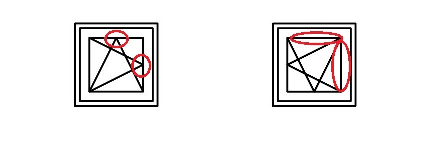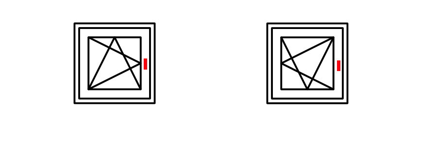 왼쪽 창호처럼 창호 상부에 꼭지점이 있으면 측면도 꼭지점 부분이 열리니 측면 꼭지점에 핸들이 설치됩니다.