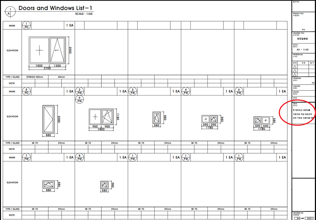 시스템 창호 제작이나 시공현장, 문제가 생겼을 때 등 모두 다 창호도를 보고 확인합니다.