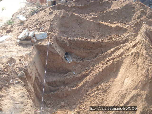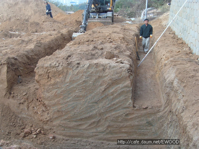 터파기 작업을 하는데, 땅이 무척 단단해서 포크레인도 쩔쩔맸습니다.