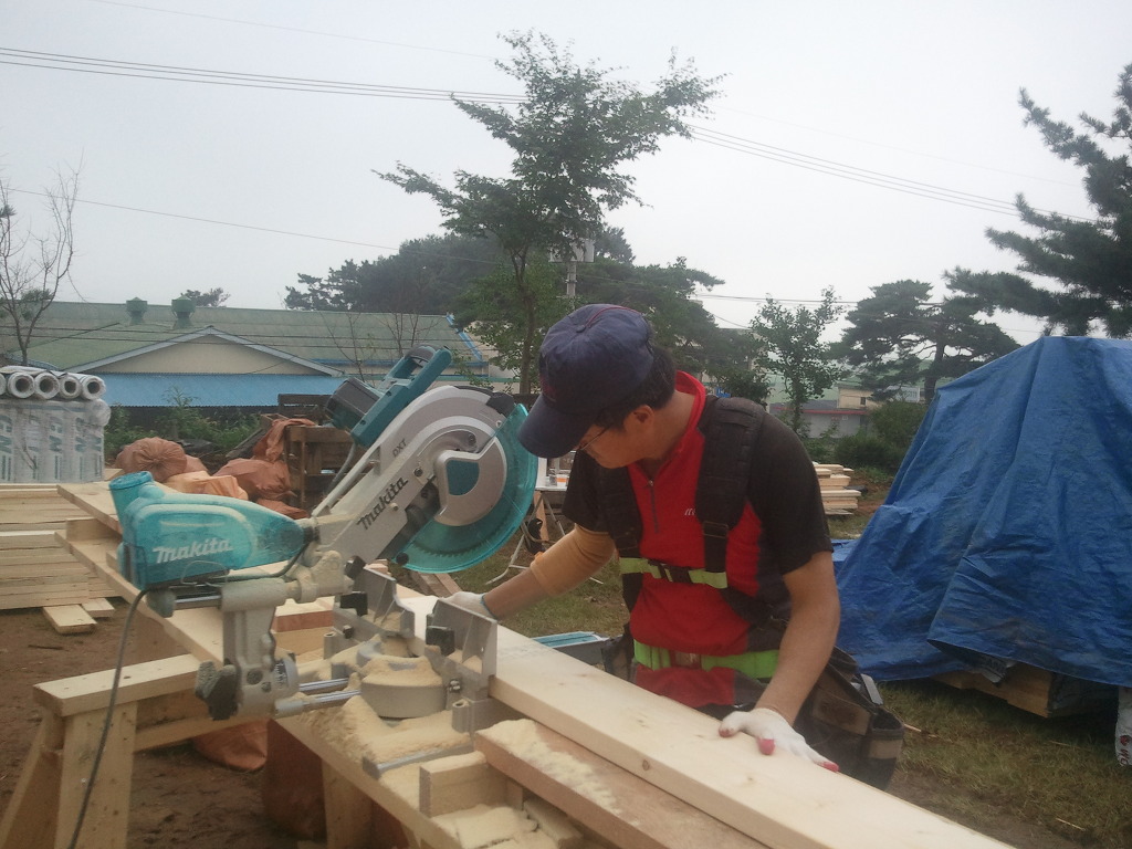 이종실 목수님~~~! 열씸이 옮기고, 재고, 자르시는 중이십니다.