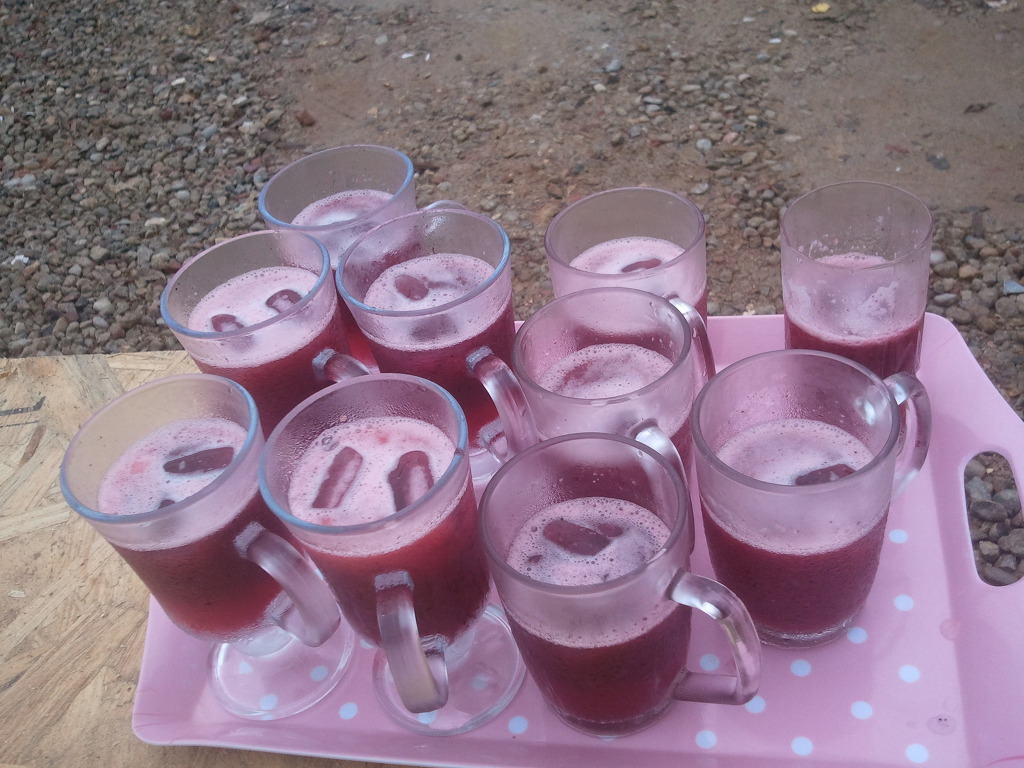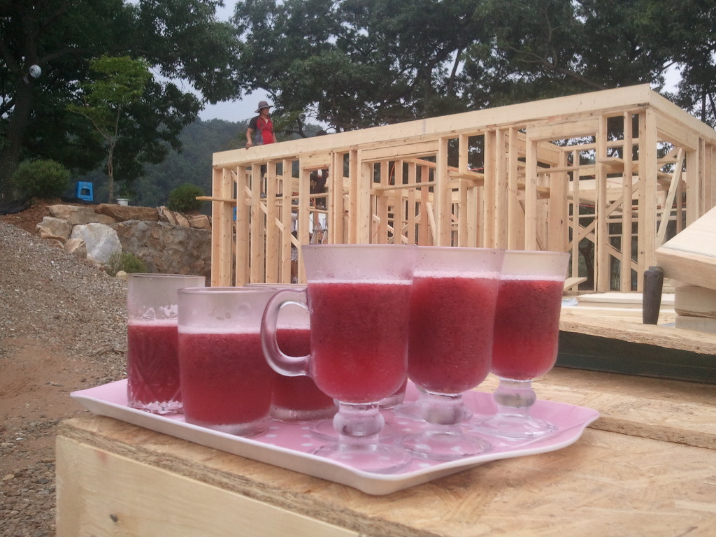 오늘의 간식 음료는 복분자 에이드입니다.