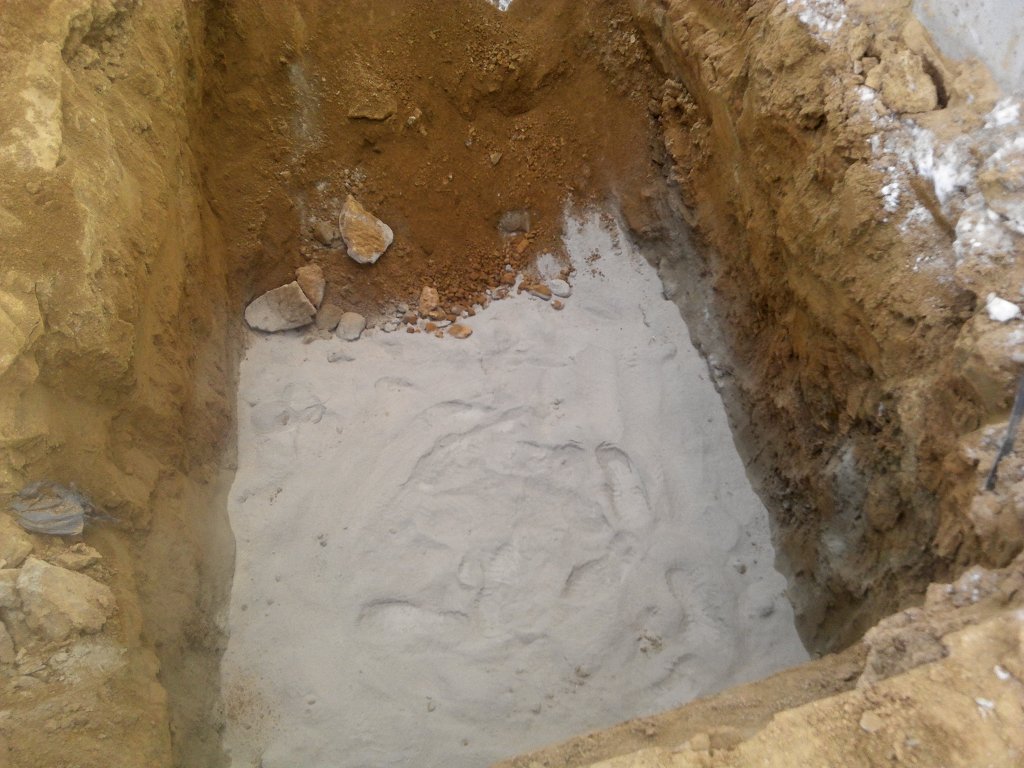 정화조를 앉히기 전에 몰탈을 바닥에 깔고 정화조를 고정합니다