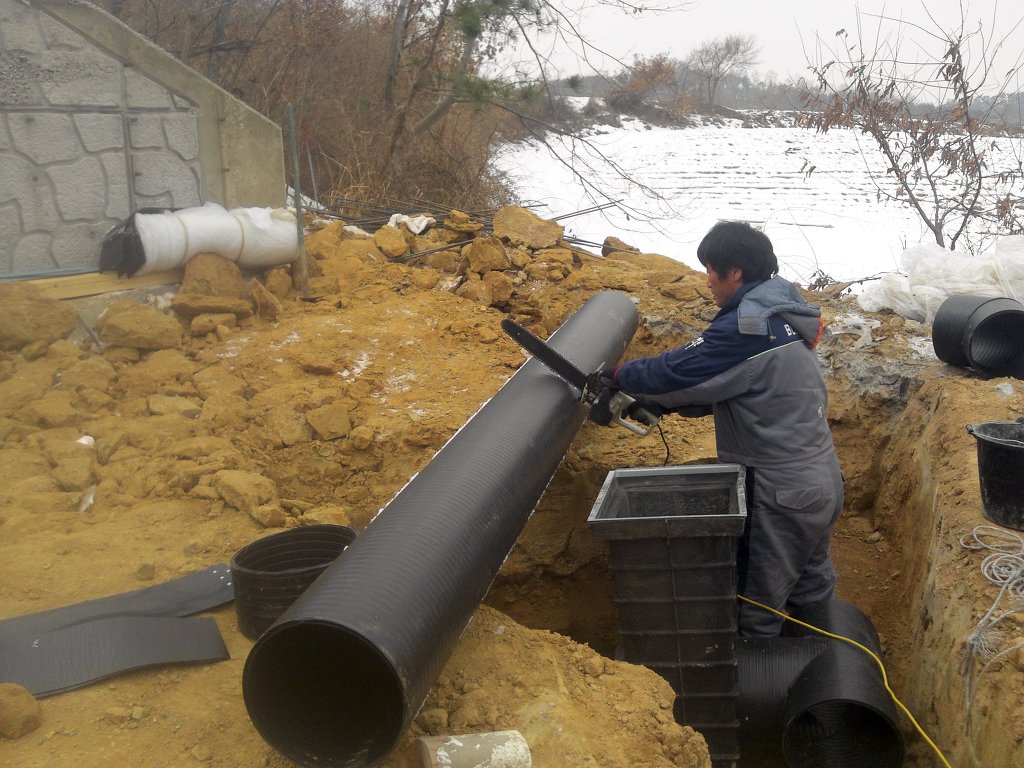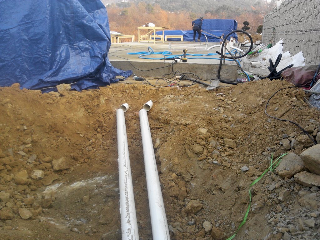 맨 좌측이 산에서 내려오는 우수을 받을 관로고 그옆이 정화조에 연결되여 여수되는 관입로니다
