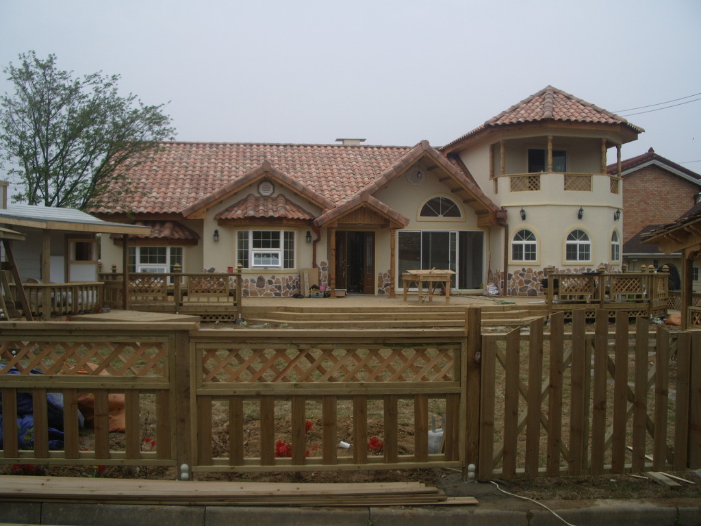 팔각기둥부분도 고급스럽게 마감하고 ... 외벽도 스타코(500)로...