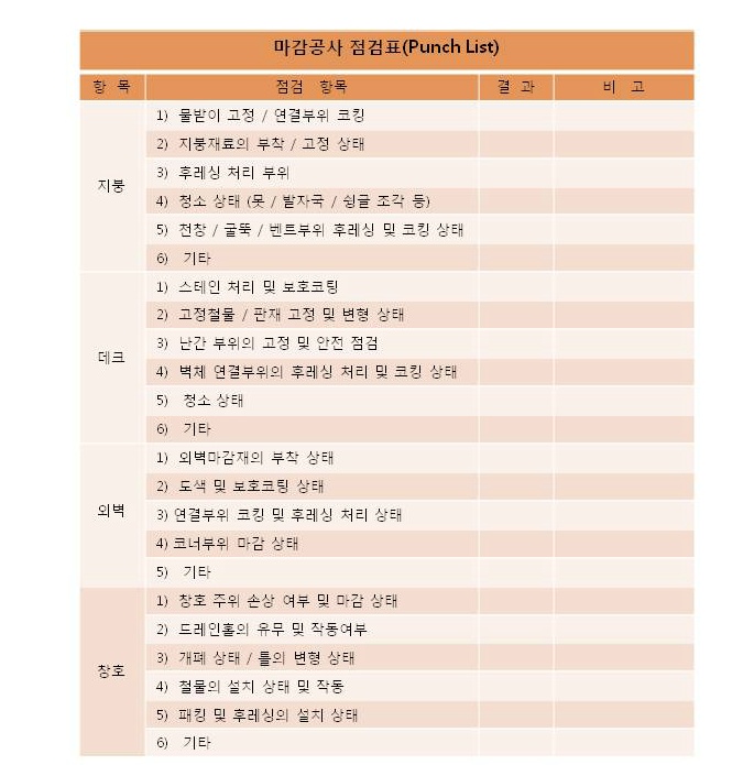 2015년 새해부터는 마감공사 점검표를 모든 현장에 적용합니다.