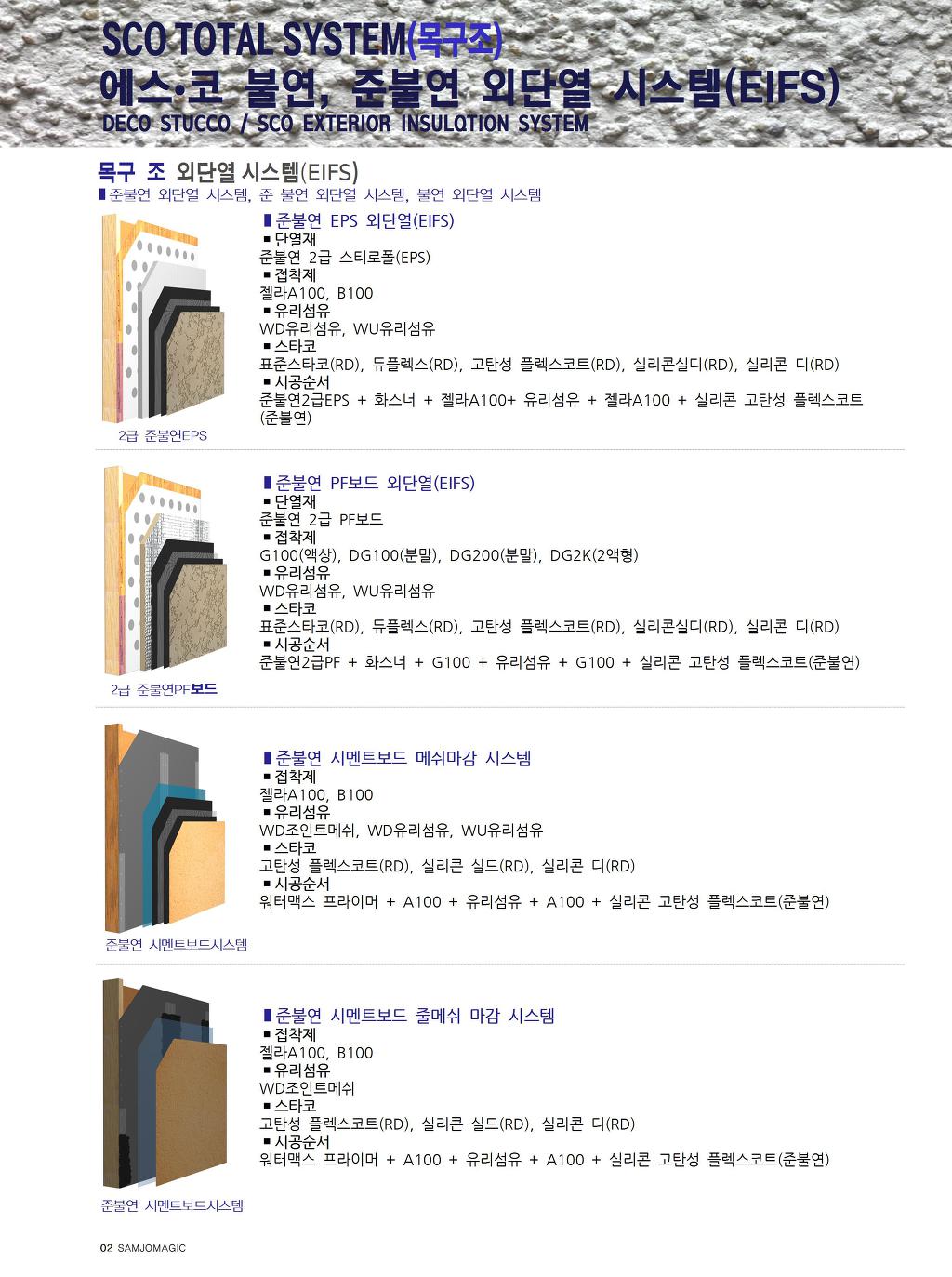 화스너 + PF보드(알루미늄 앞면) + WD유리섬유 + G100 + 스타코(RD)
