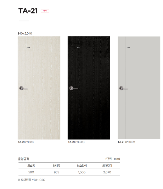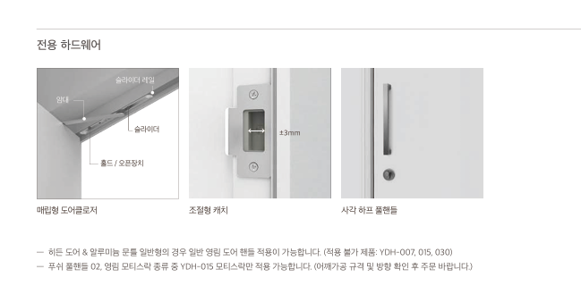 영림히든슬라이딩도어, 영림펫도어, 영림차음도어, 영림납도어, 영림간살도어, 영림초슬림3연동도어