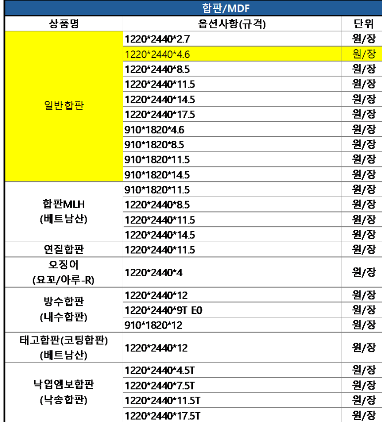 일산합판 구매 가이드 ---- 품목,규격,수량 확인후 실시간 합리적인 도매가로 견적해 드려요. 010-6212-3273