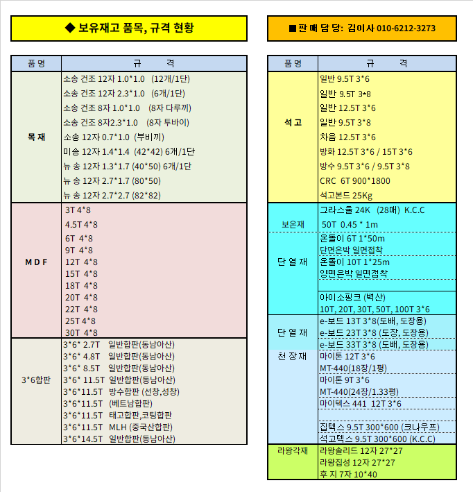일산합판 발주시(주문) 연락주세요. 010-6212-3273 (김이사)