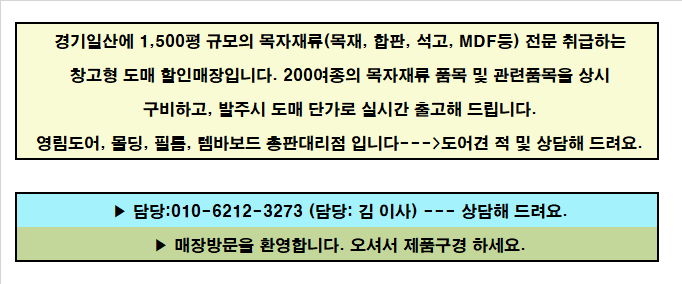 ◆ “일산목자재” (상담 : 김이사 010-6212-3273)