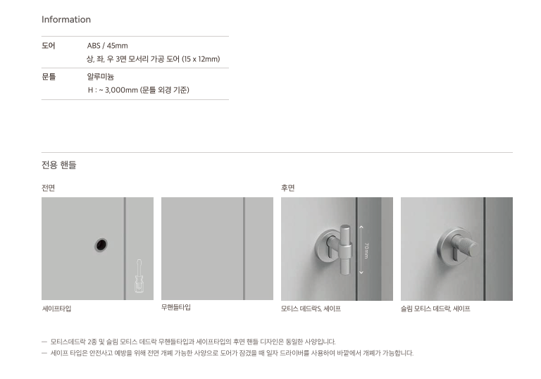 미니멀인테리어를 위해 필수인 히든도어와 함께 안전사고 예방에 효과적인 세이프 핸들