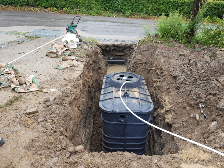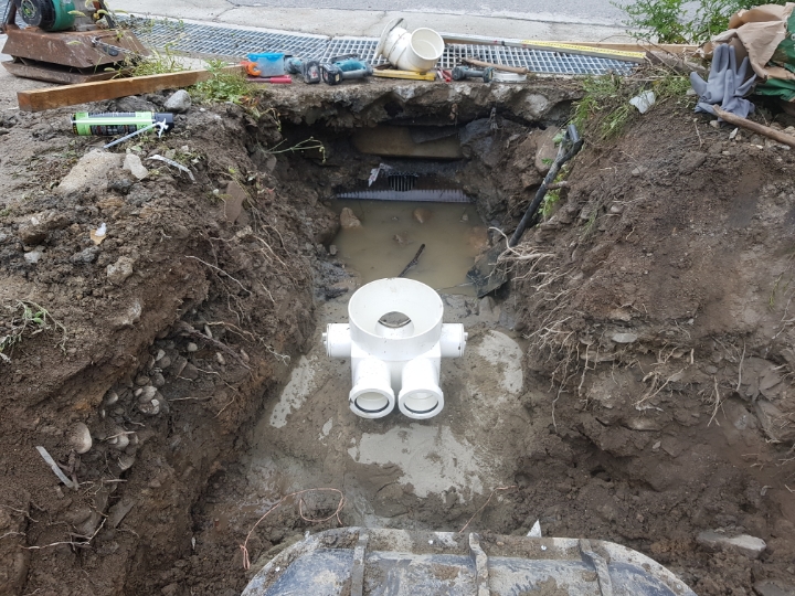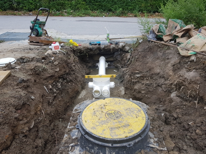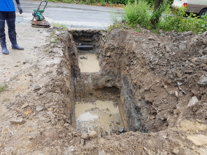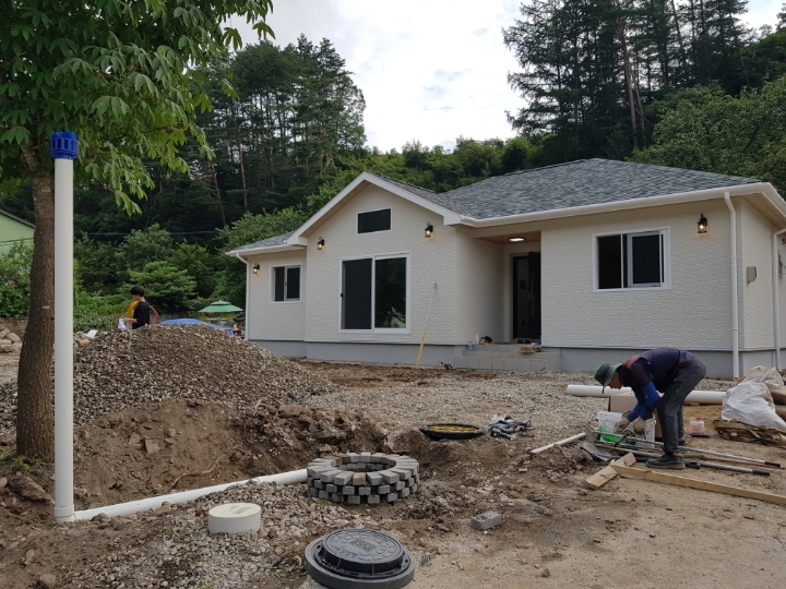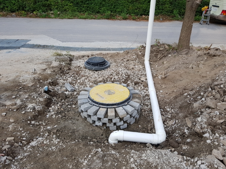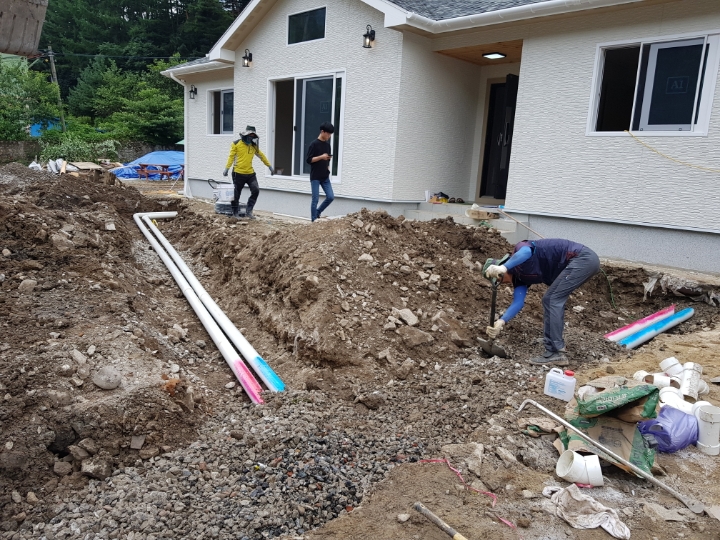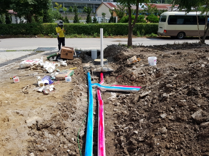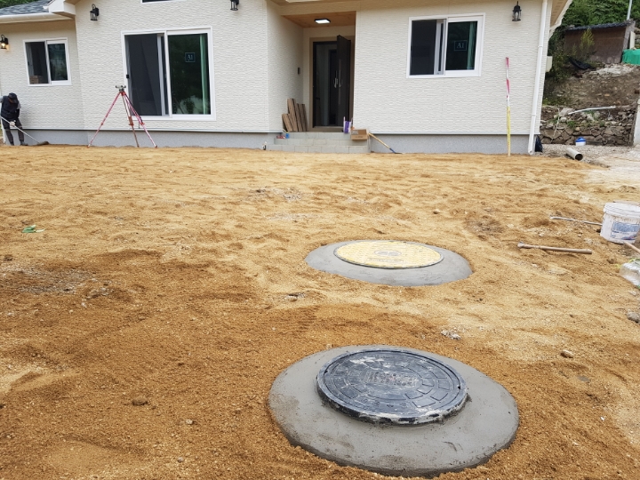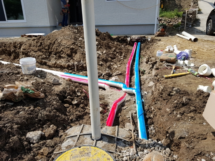 오수관(적색)정화조 연결 / 하수관(청색) 오수받이 연결