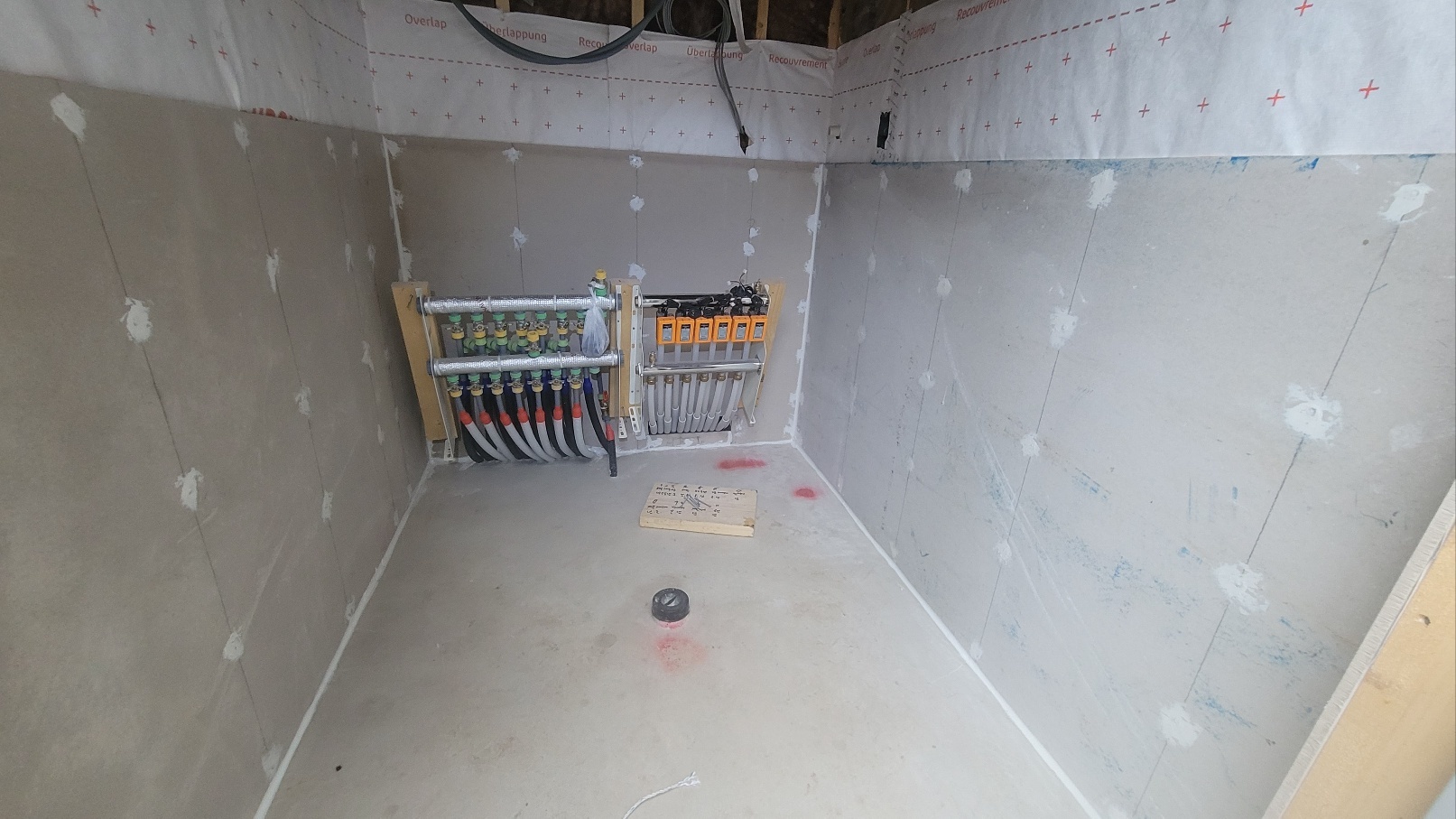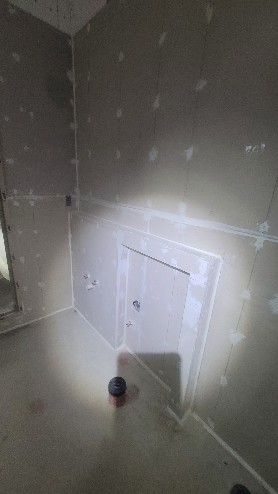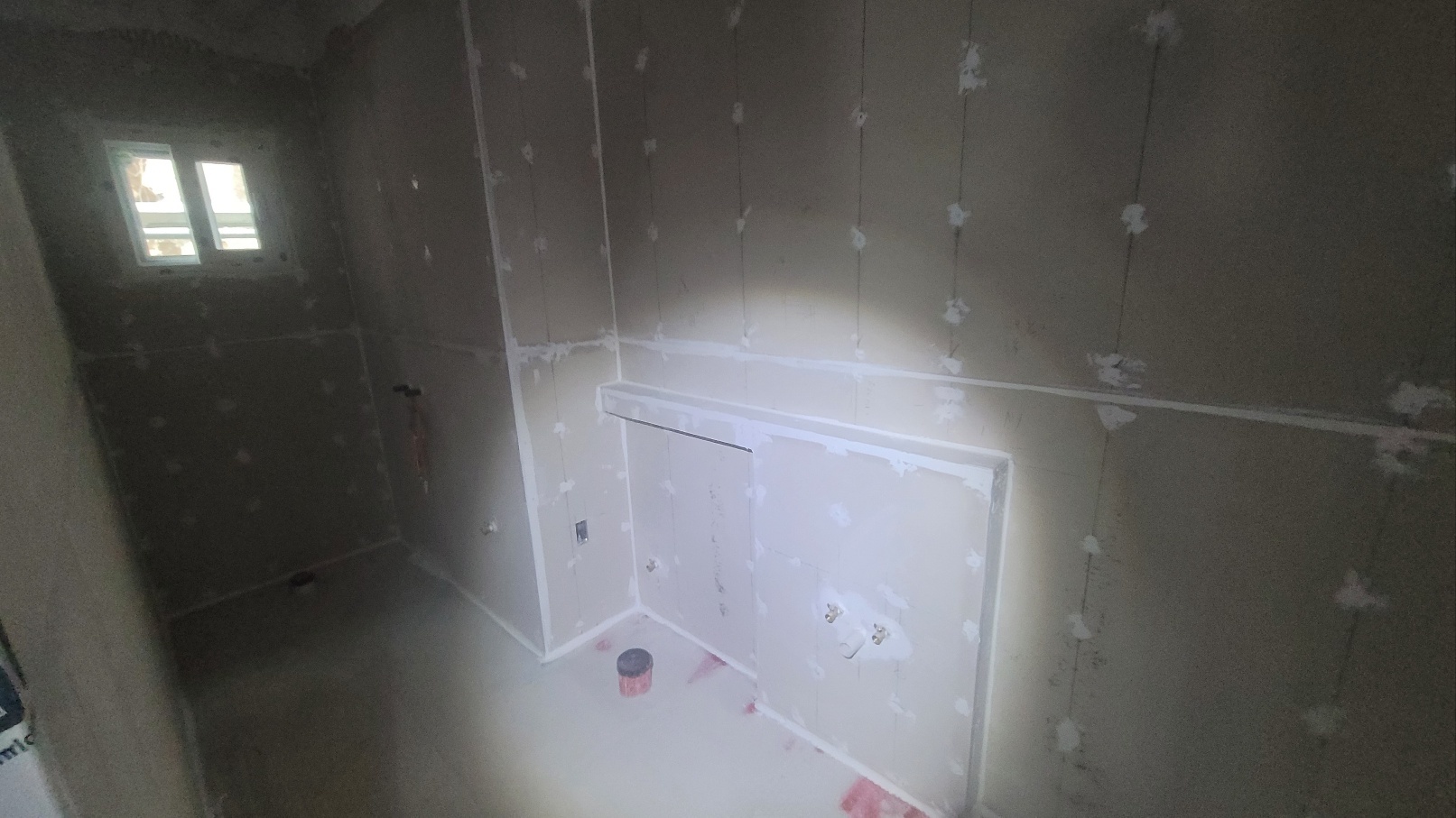 시멘트보드(화장실2개소/보일러실) 시공완료, 피스 자리 및 조인트 부분 기밀작업
