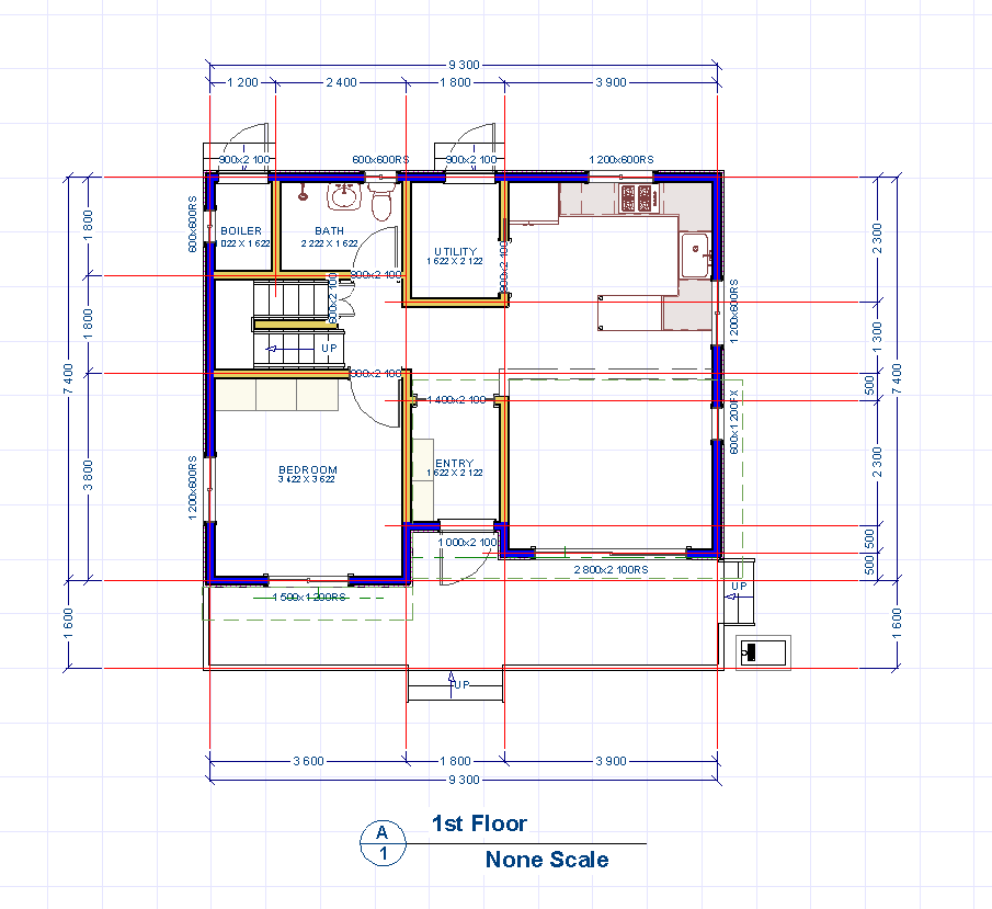 1. 방 2개 전면 창 1500x1200을 1800x1200으로 변경.