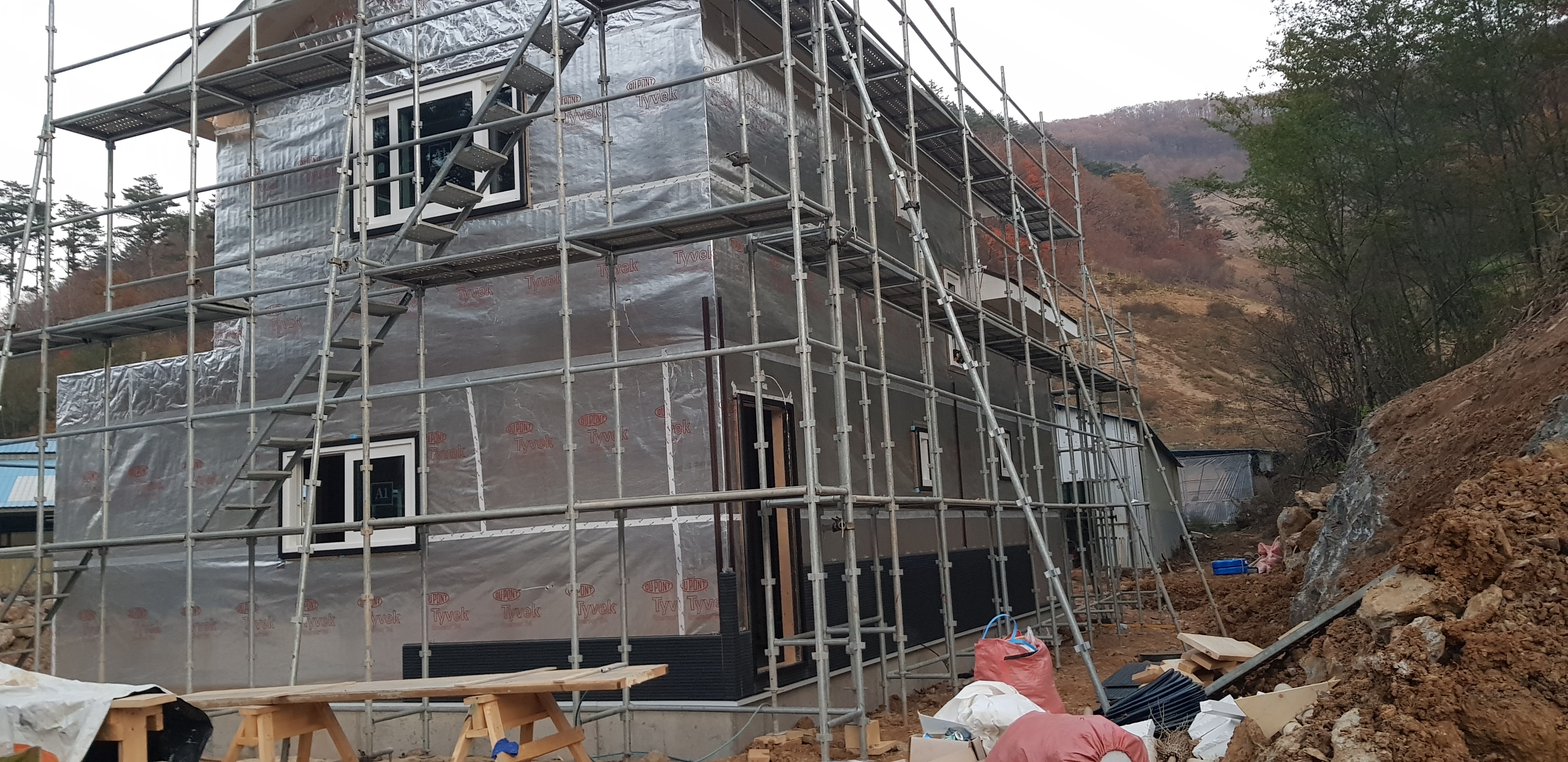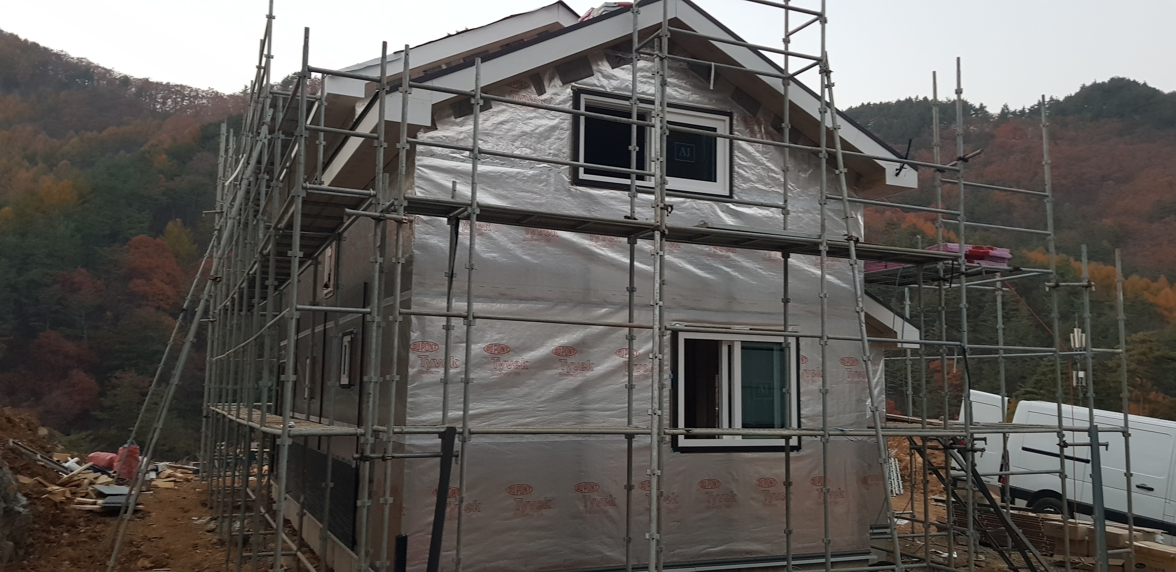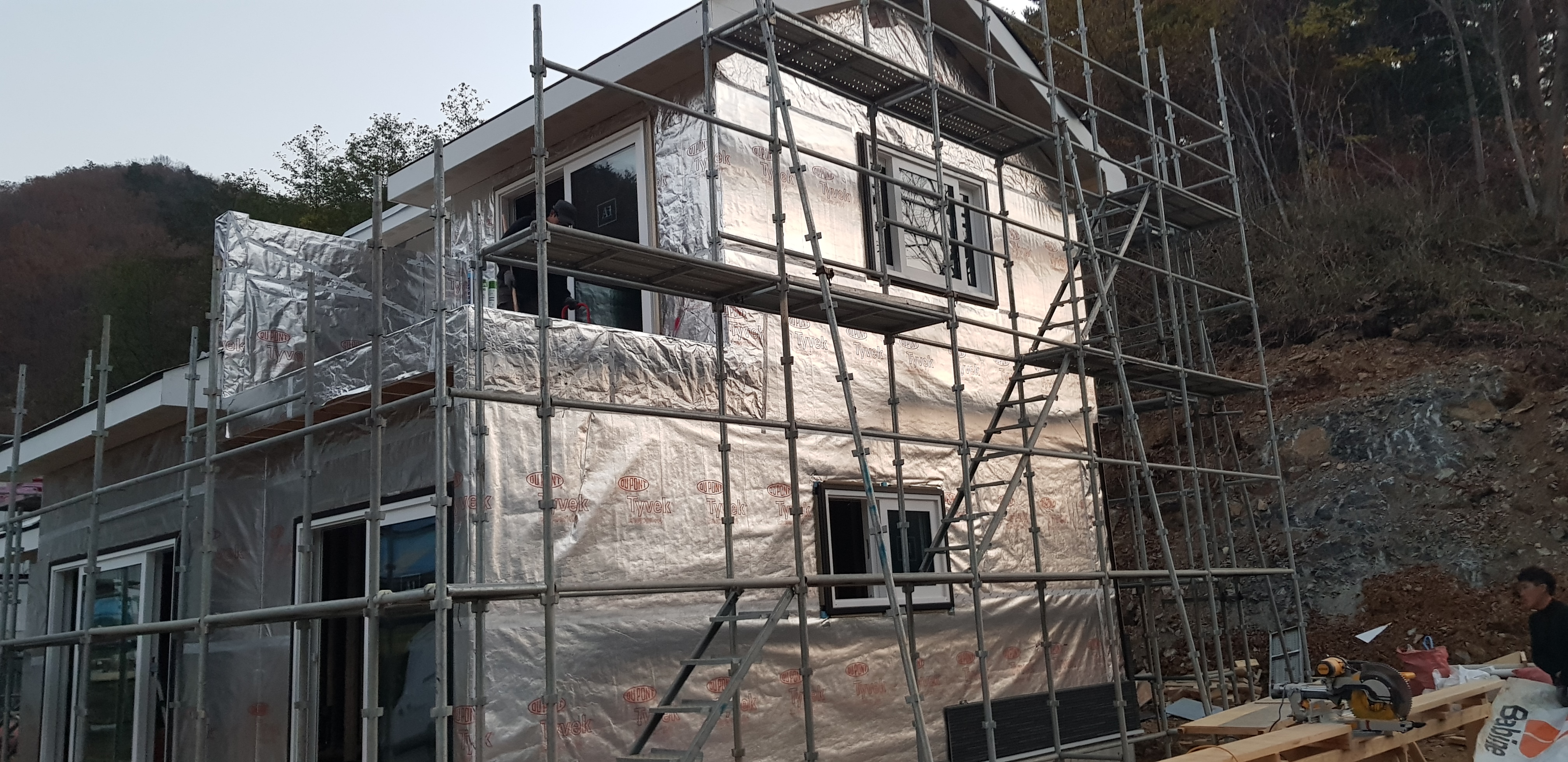 내일은 오전에 서리가 내리기 때문에 오전참 전에는 세라믹 사이딩 작업을 하고 이후에 지붕작업을 할 계획입니다.