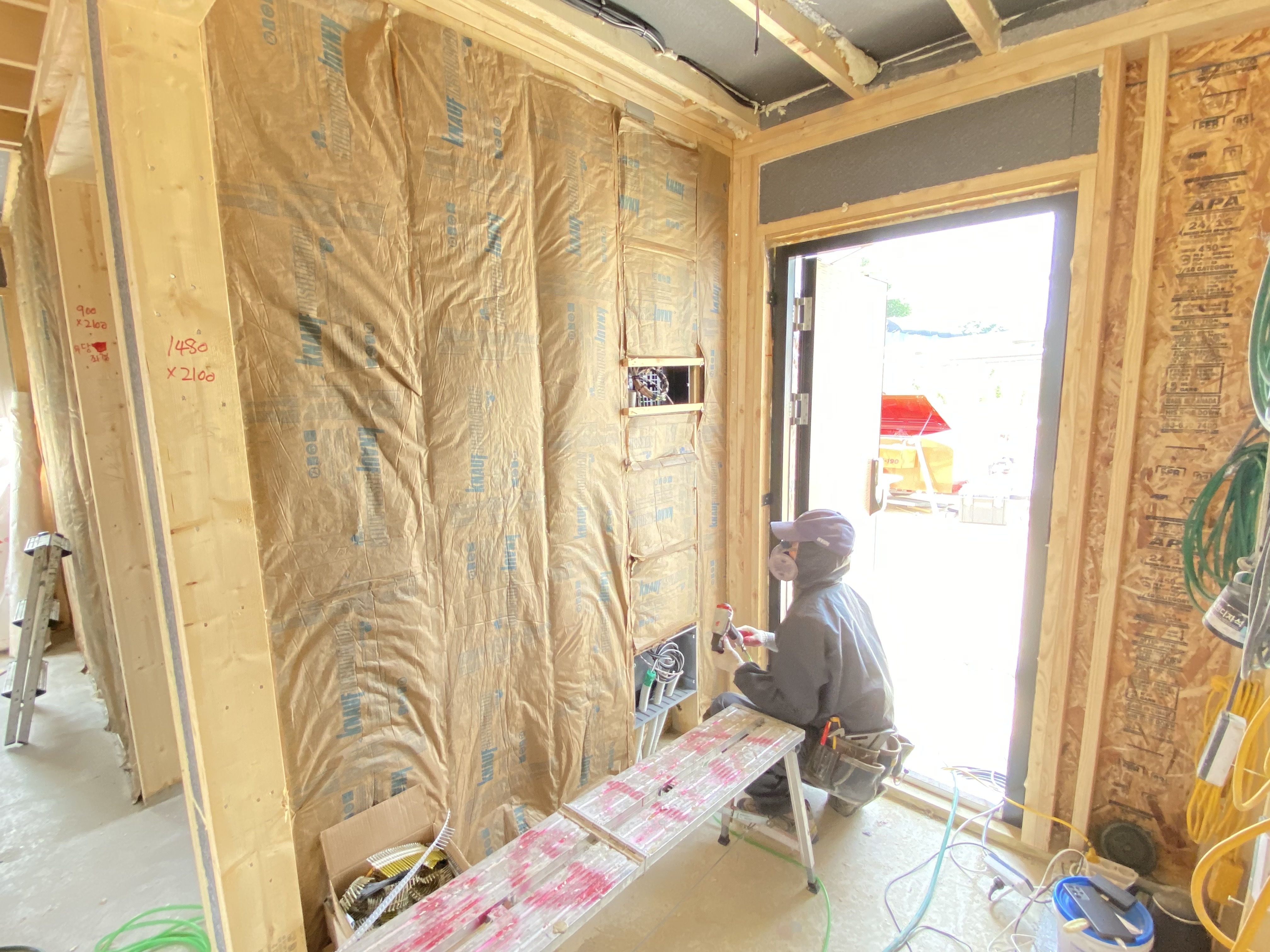 안성 삼죽 현장 15일차 - 1층 욕실 아쿠아패널 시공, 에코배트 인슐레이션 작업완료