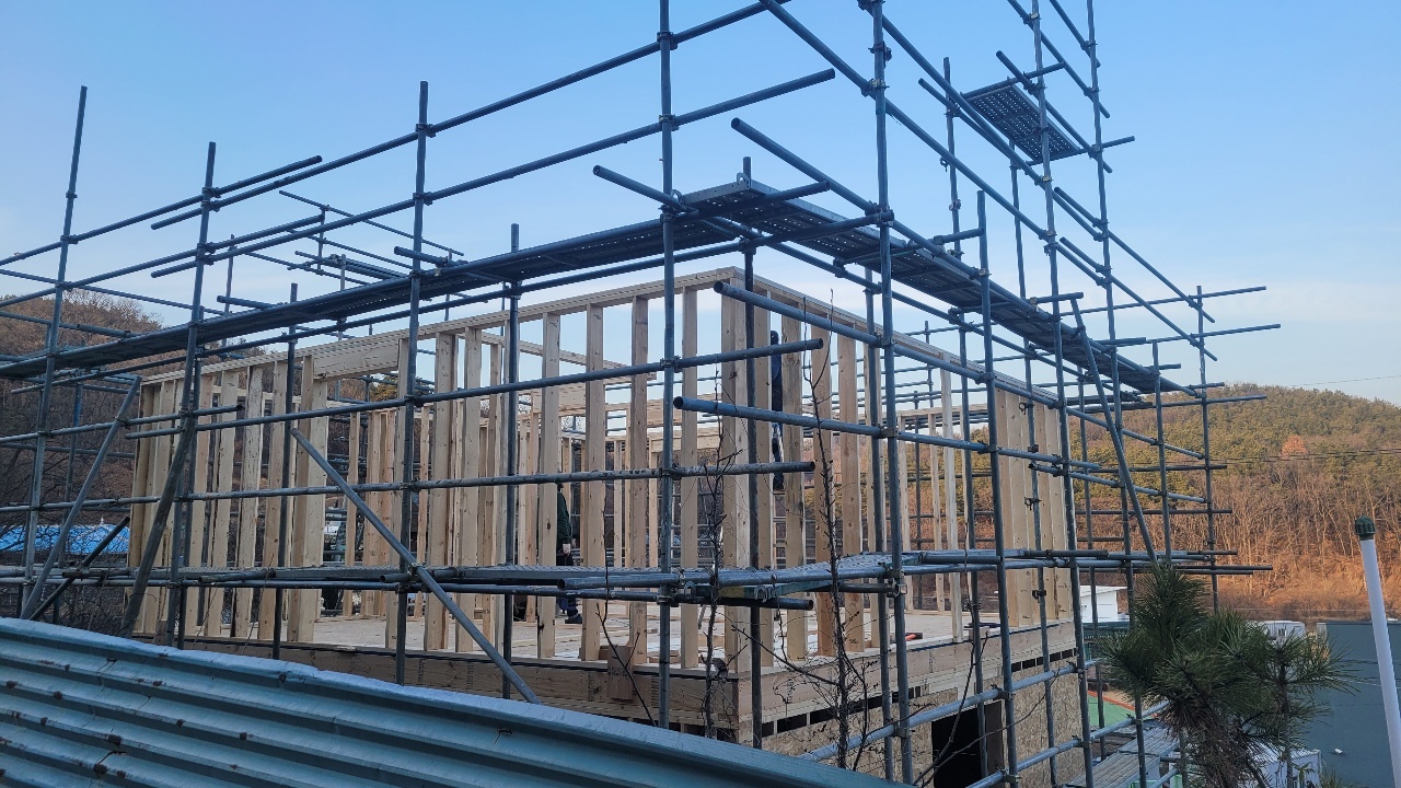 - 2층 스터드 재단 및 2층 벽체 시공