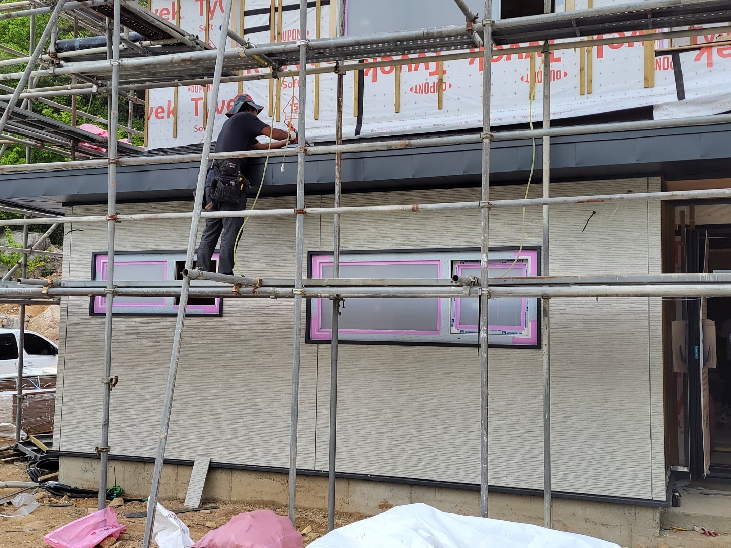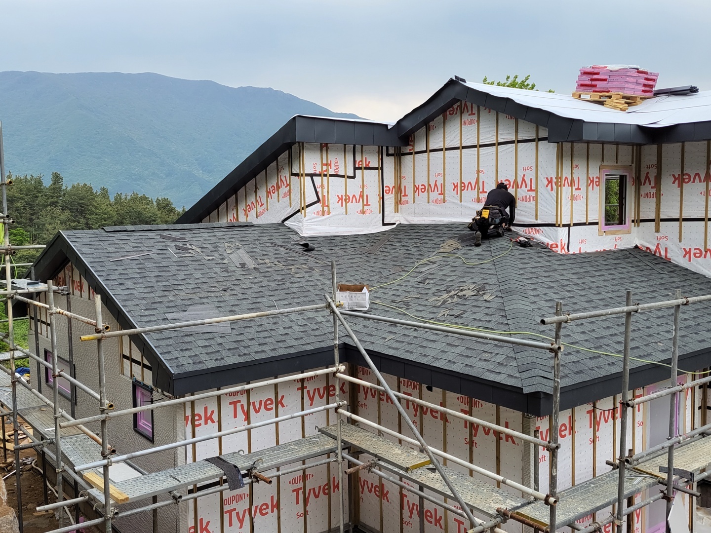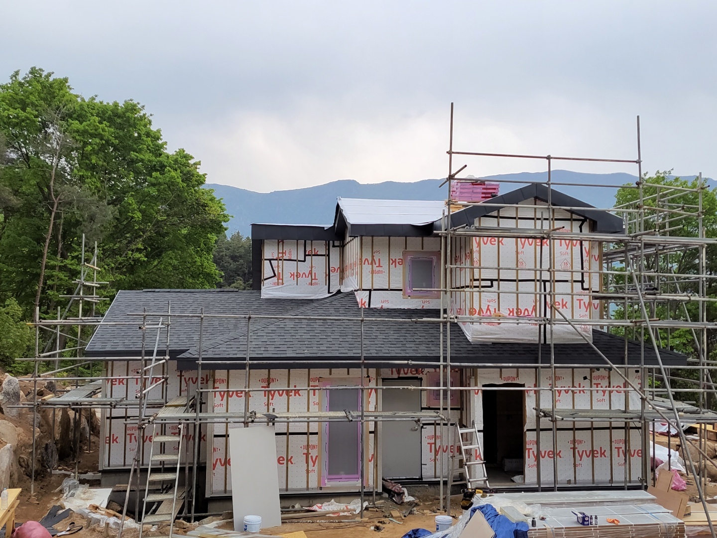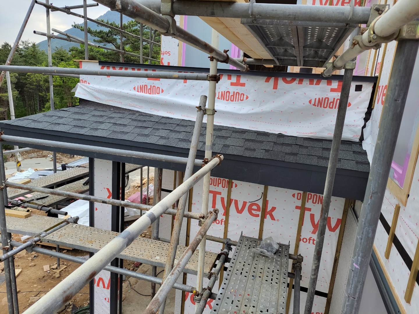 | ※ 작업일자 : 05/02일 ▣ 작업자 팀 장 : 이세영(8시간) 부 팀 장 : 윤종민(8시간) 팀 원 : 김상수(8시간), 박준석(8시간) ▣ 작업내용 - 외부 세라믹 및 창문 후레싱 작업 - 지붕 싱글 작업 |