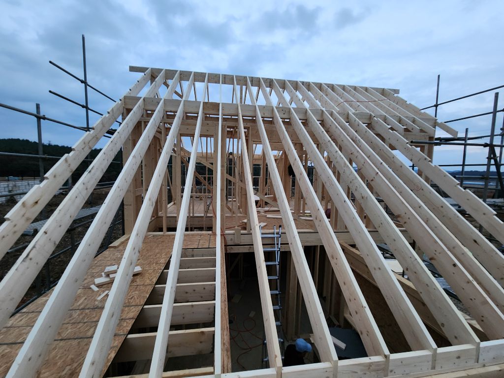 ㅡ 2층 주지붕 서까래 및 보막이 작업 진행