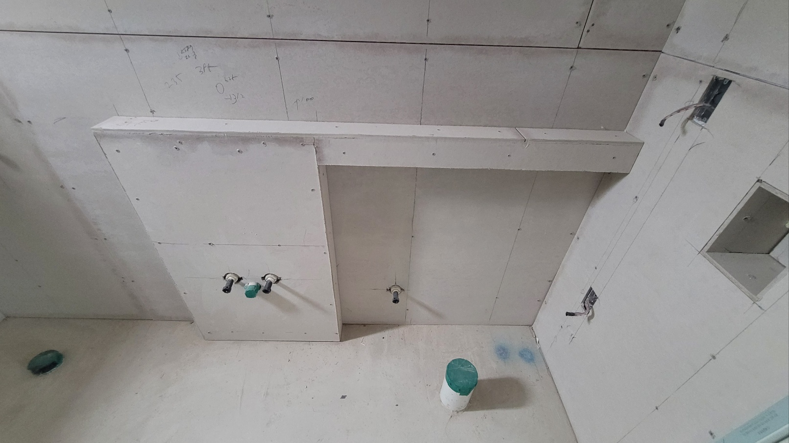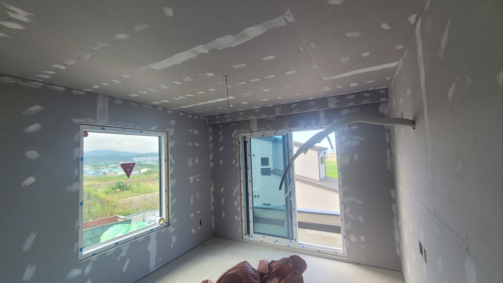 - 석고 보드 시공완료 및 콘센트/스위치 타공