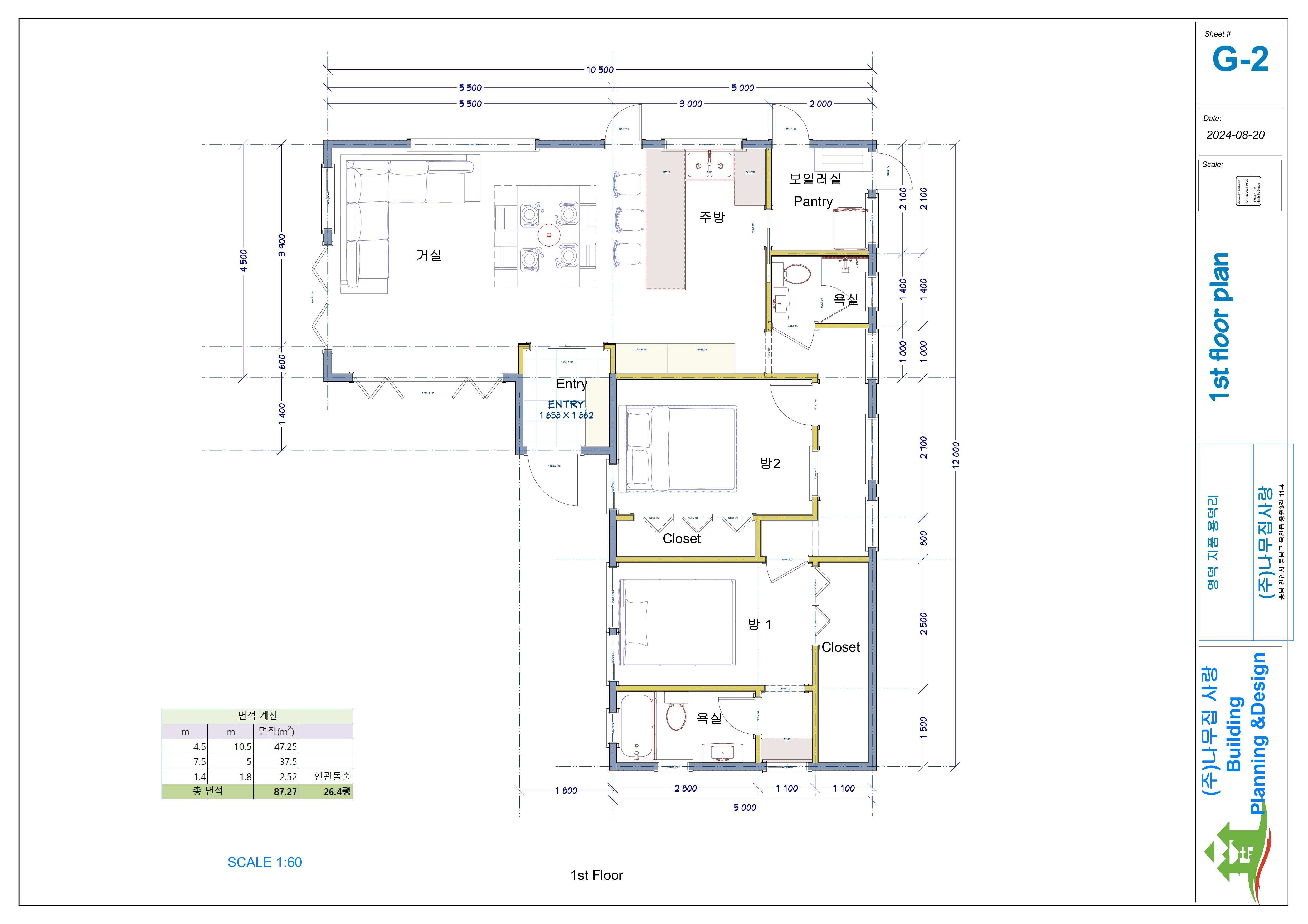 25평 수정안에 대한 도면 올립니다 작성자calpoly86|작성시간24.08.20|조회수143 목록 댓글 0 글자크기 작게가 글자크기 크게가 면적은 현관부분을 추가해서 87.27sqm, 26.4평으로 되었습니다. 창호를 많이 설치하셨는데, 확인 부탁드립니다. 다음검색 현재 게시글 추가 기능 열기 북마크 공유하기 신고 센터로 신고 댓글 댓글 0 댓글쓰기 답글쓰기 댓글 리스트