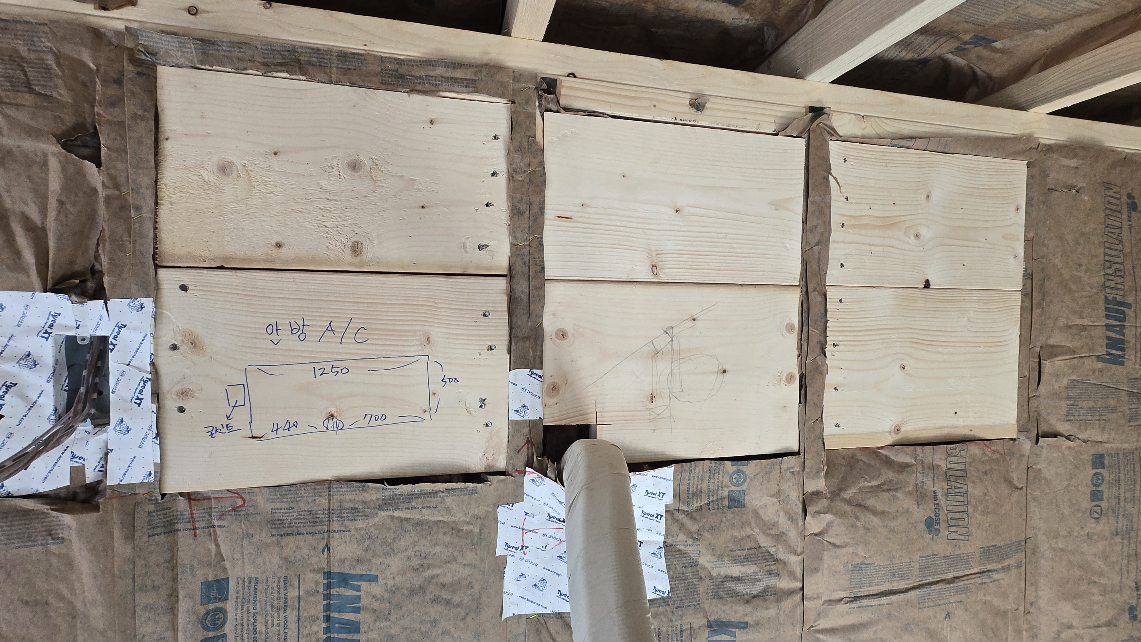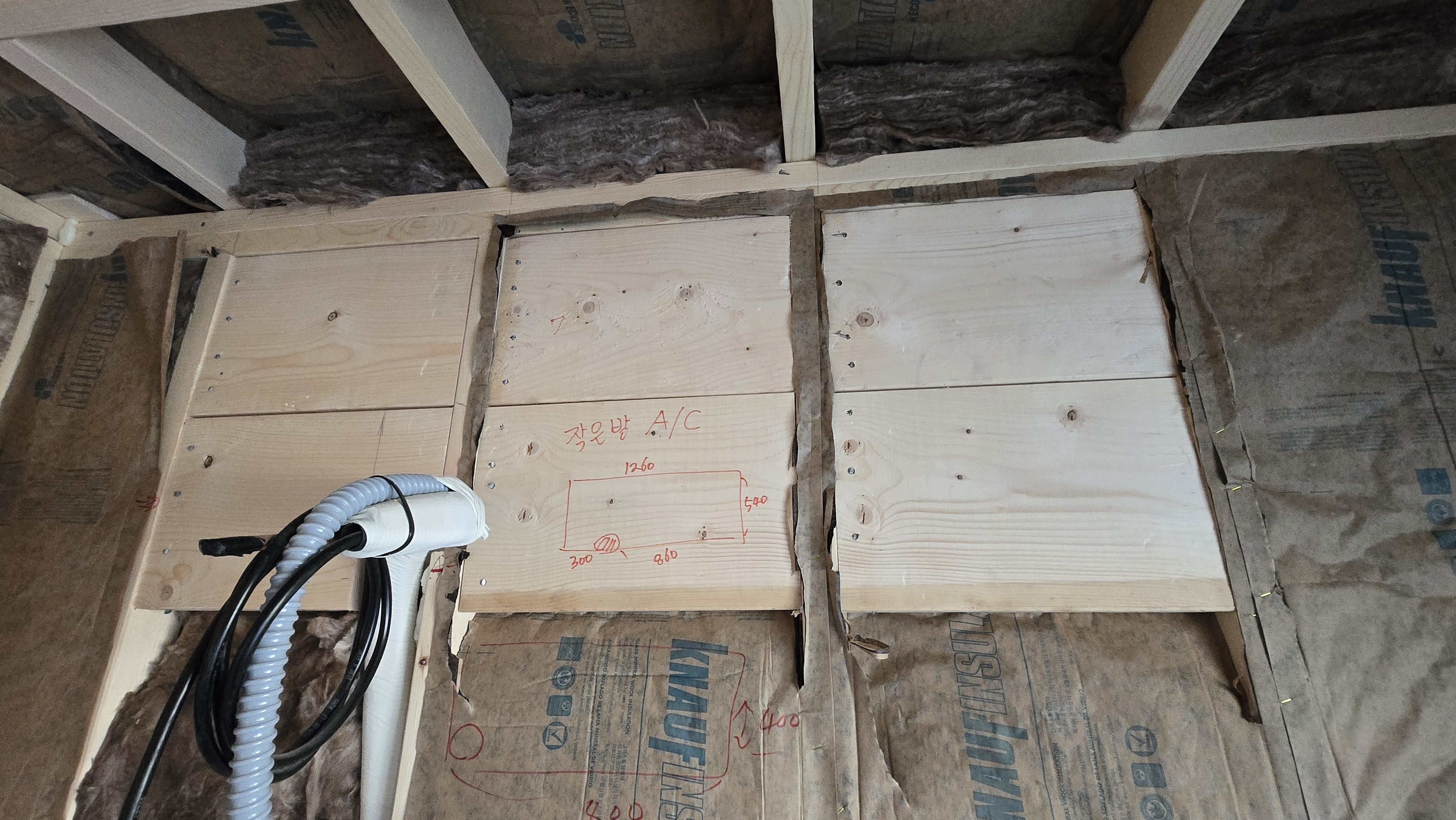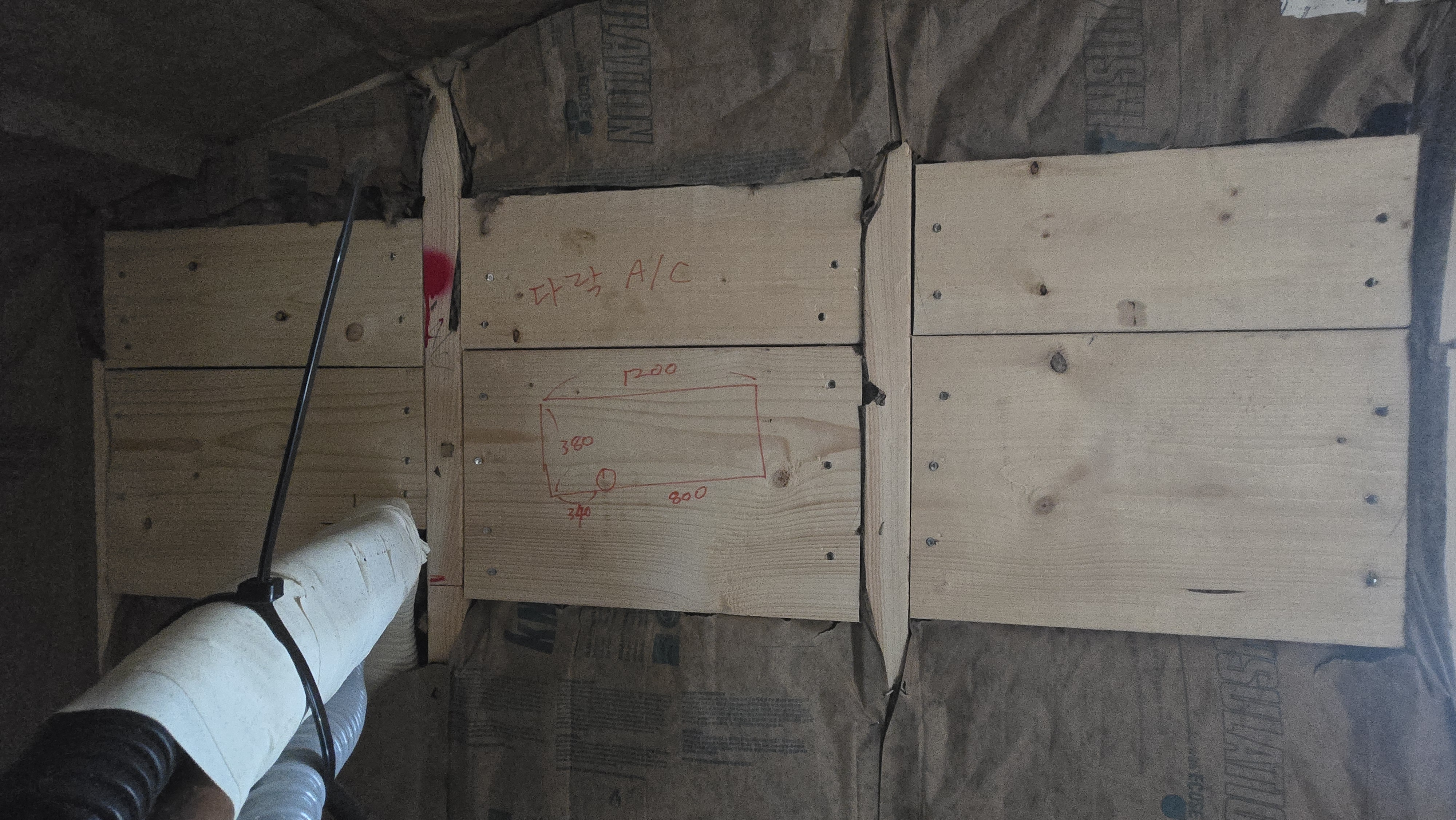 - 목작업 : 현관 다운틀, 천정 등 블러킹 , 에어콘 블러킹다락 실내 게이블 벽체, 다락 계단 손스침 벽체