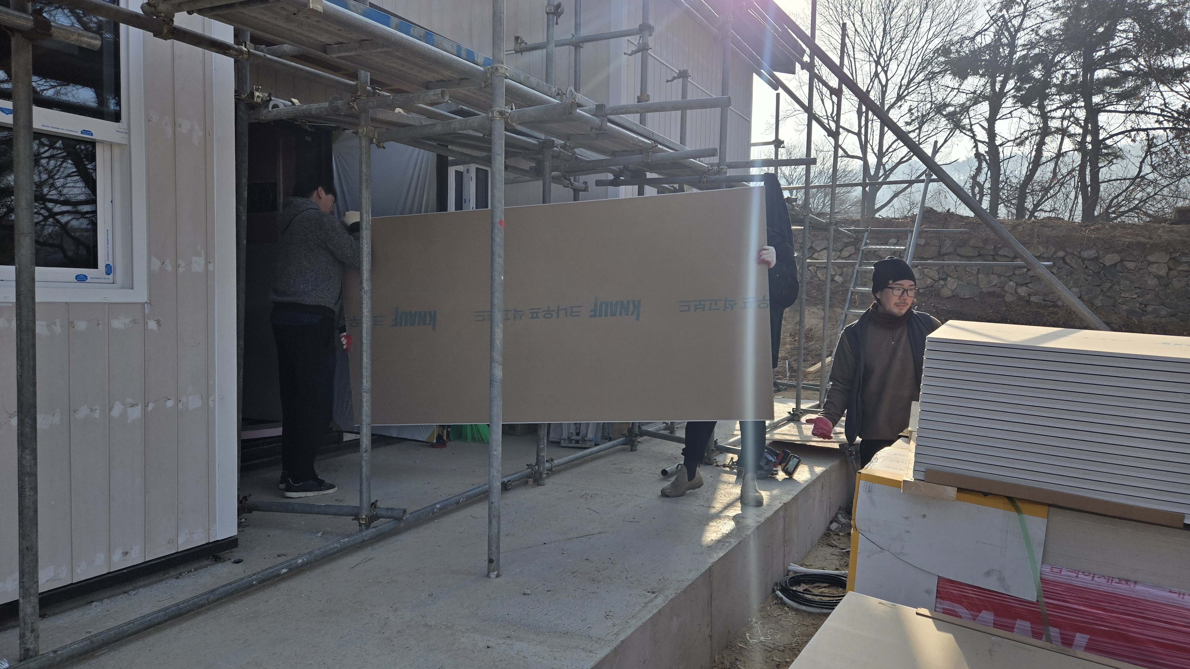- 석고보드 입고 및 양중