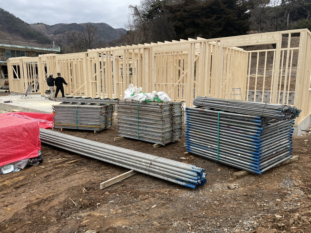 - 비계 입고 및 일부 설치