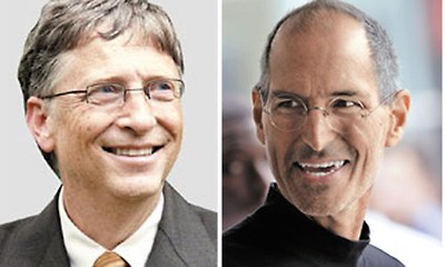 - ▲ 애플 CEO 스티브 잡스(오른쪽)와 마이크로소프트 CEO 빌 게이츠(왼쪽)/조선일보DB.