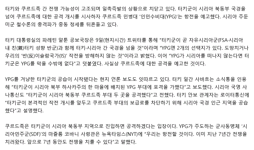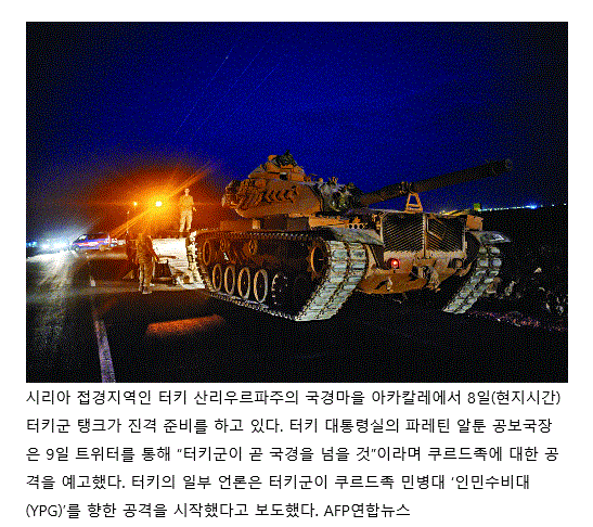 터키, 쿠르드 침공 개시 … “곧 시리아 국경 넘는다”