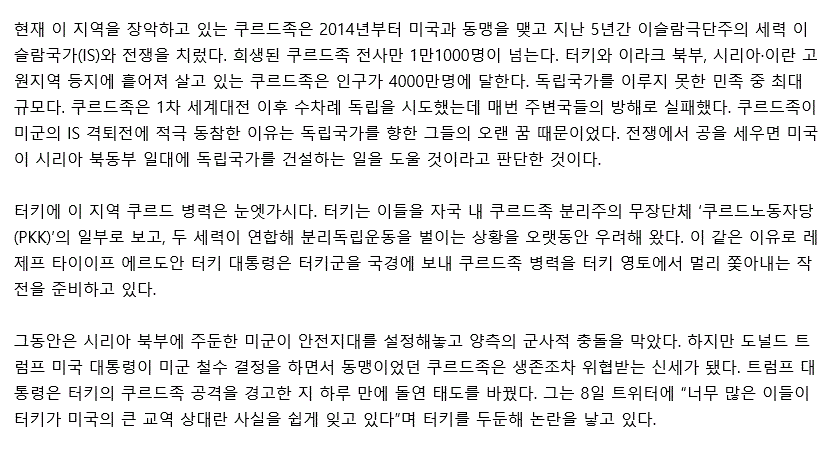 동맹들은, 우리도 쿠르드족처럼 버림받을 수도 있고,