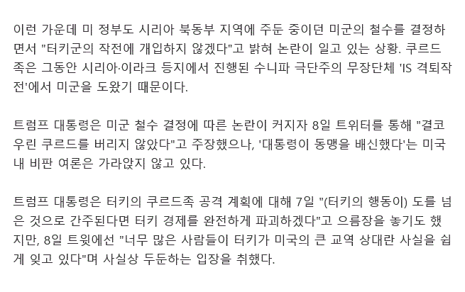 도널드 트럼프 미국 대통령이, 쿠르드족을 배반했으며,