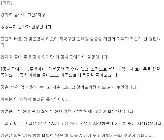 더불어 민주당 임종성 의원 가족 · 지인 … 지역구 개발 직전, '쪼개기 매입'